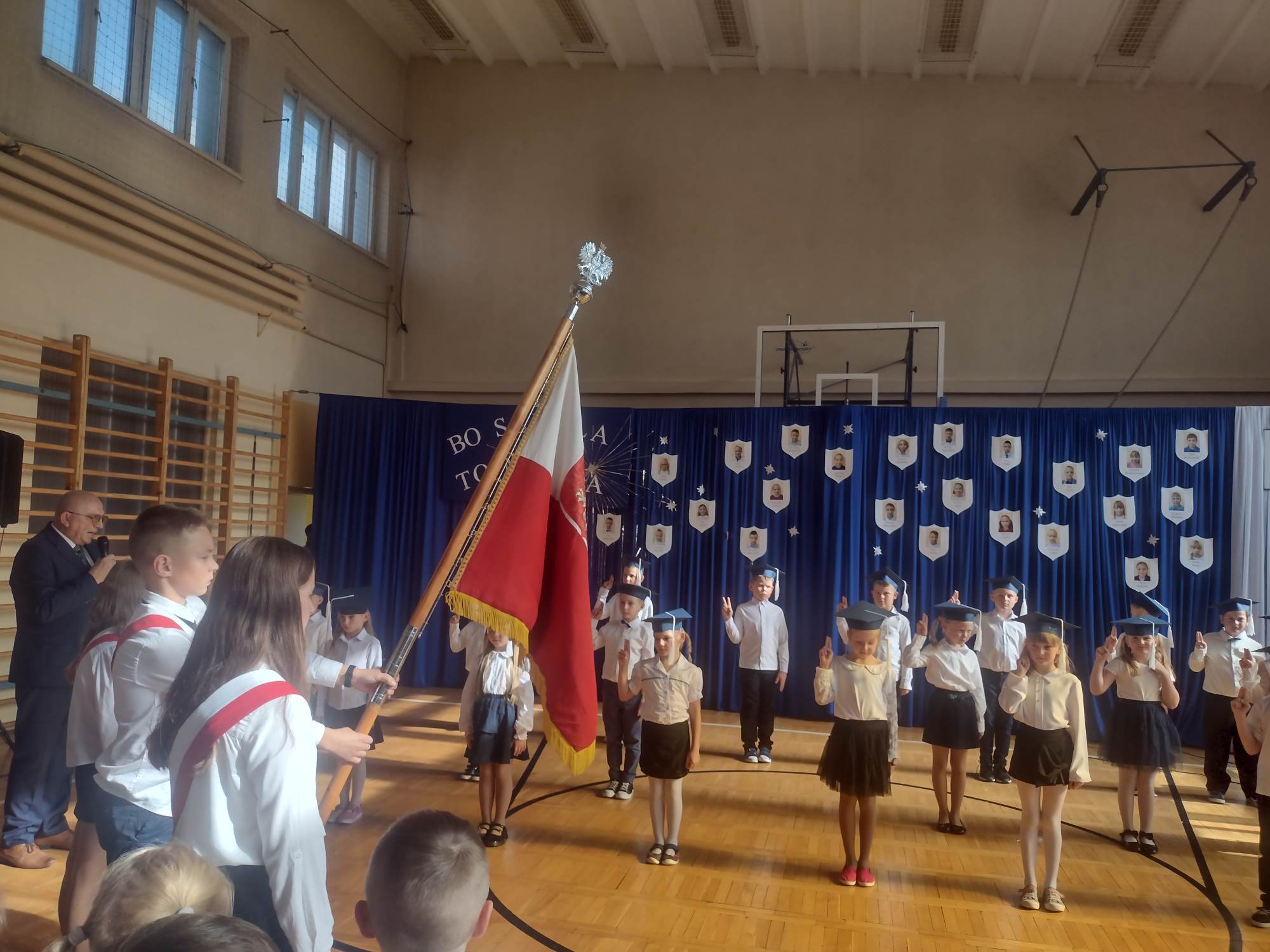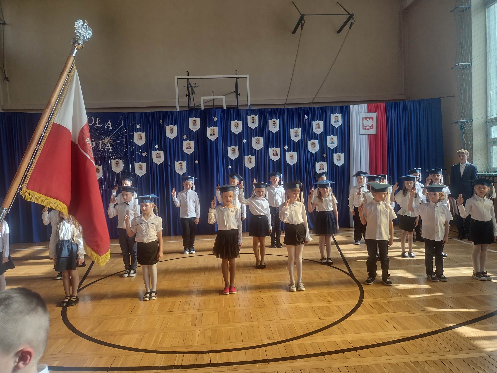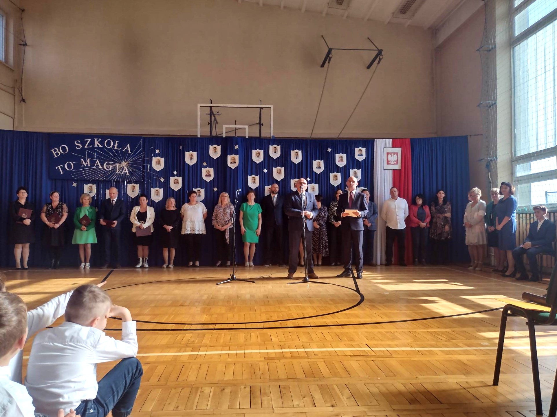 Za nami pierwszy dzwonek. Wakacje stały się już wspomnieniem… 1 IX społeczność szkolna zebrała się na inauguracji nowego roku pracy i nauki. W tym dniu towarzyszyli nam zaproszeni goście: Pan Wójt Dariusz Misztal, Ksiądz Proboszcz Robert Kaczmarek, Pani Przewodnicząca Rady Gminy Karolina Rauch i Pani Przewodnicząca Rady Rodziców Daria Konowalska. Pan Dyrektor Andrzej Szklarek powitał obecnych i wyraził nadzieję, że najbliższe miesiące będą dla wszystkich czasem odkrywania talentów i rozwoju. Pan Wójt Dariusz Misztal złożył okolicznościowe życzenia i nadmienił, że 86 lat temu wybuch II wojny światowej sprawił, że szkoły nie wypełniły się dziecięcym śmiechem i gwarem. Po części oficjalnej uczniowie spotkali się z wychowawcami, by choć na krótko przypomnieć sobie klimat sali lekcyjnej.