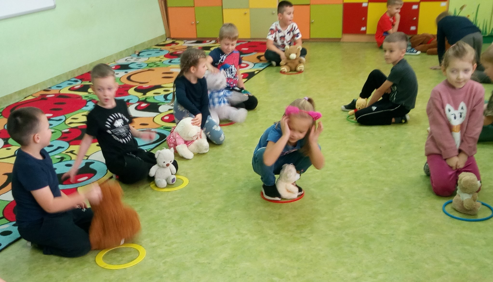 5 i 6 latki  wraz z wychowawczyniami Małgorzatą Piwowarską i Karoliną Hynek obchodziły Dzień Pluszowego Misia. Dzieci chętnie brały udział
