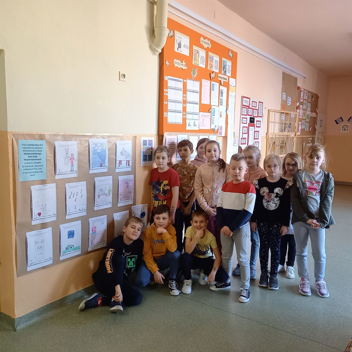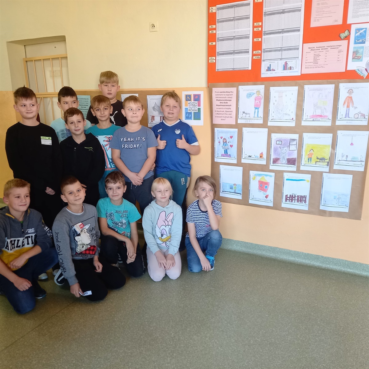 Z tej okazji nasza szkoła, jak co roku, włączyła się w obchody święta. W ramach zajęć bibliotecznych uczniowie klas III a i III b uczestniczyli w warsztatach „Patrzeć dłońmi, widzieć nosem”, podczas których wysłuchali fragmentu książki B. Majchrzak „Opowieść o Błękitnym Psie, czyli o rzeczach trudnych dla dzieci”  dotykającego problemu niepełnosprawności. Swoje wrażenia z lektury przelali na papier, tworząc plastyczny obraz do wysłuchanego tekstu.