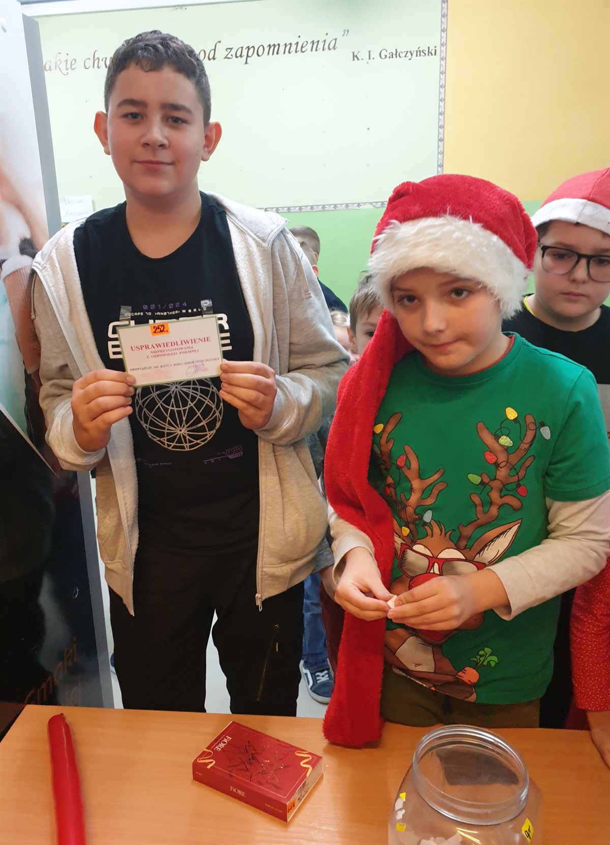 Magiczna Loteria Mikołajkowa zakończona 😊. Po wielu emocjonujących doznaniach wszyscy biorący udział w loterii zostali szczęściarzami. Każdy los był pełen i wnosił coś do życia uczniów, ale przede wszystkim uczył bycia dobrym. Nasze dzielenie się z innymi, to wymierny wkład do puszek WOŚP. Gratuluję dzieciom i ich Rodzicom umiejętności zabawy, spontanicznej radości, wytrwałości i empatii. Dziękuję Wszystkim Anonimowym Sponsorom za pomoc w zorganizowaniu loterii. Bez Was nie byłaby tak atrakcyjna. 😍