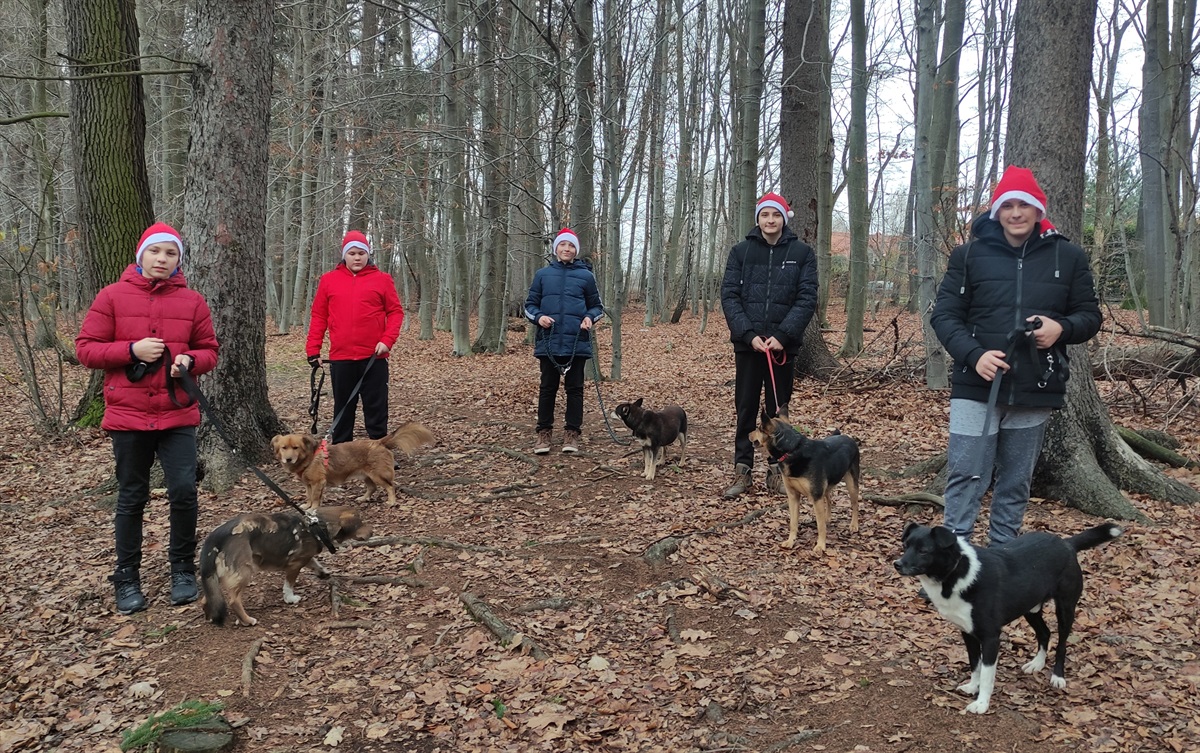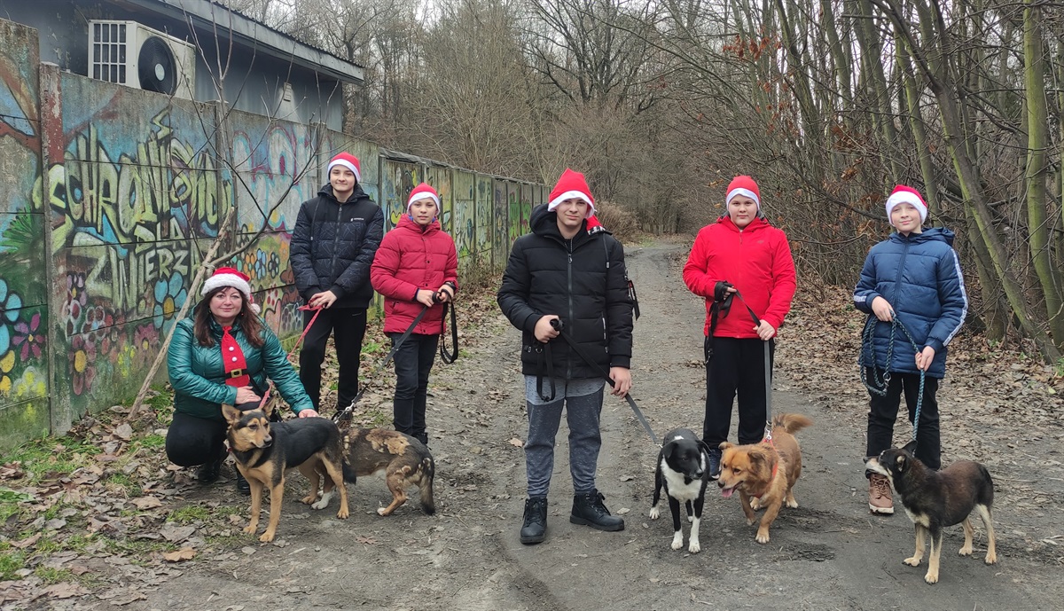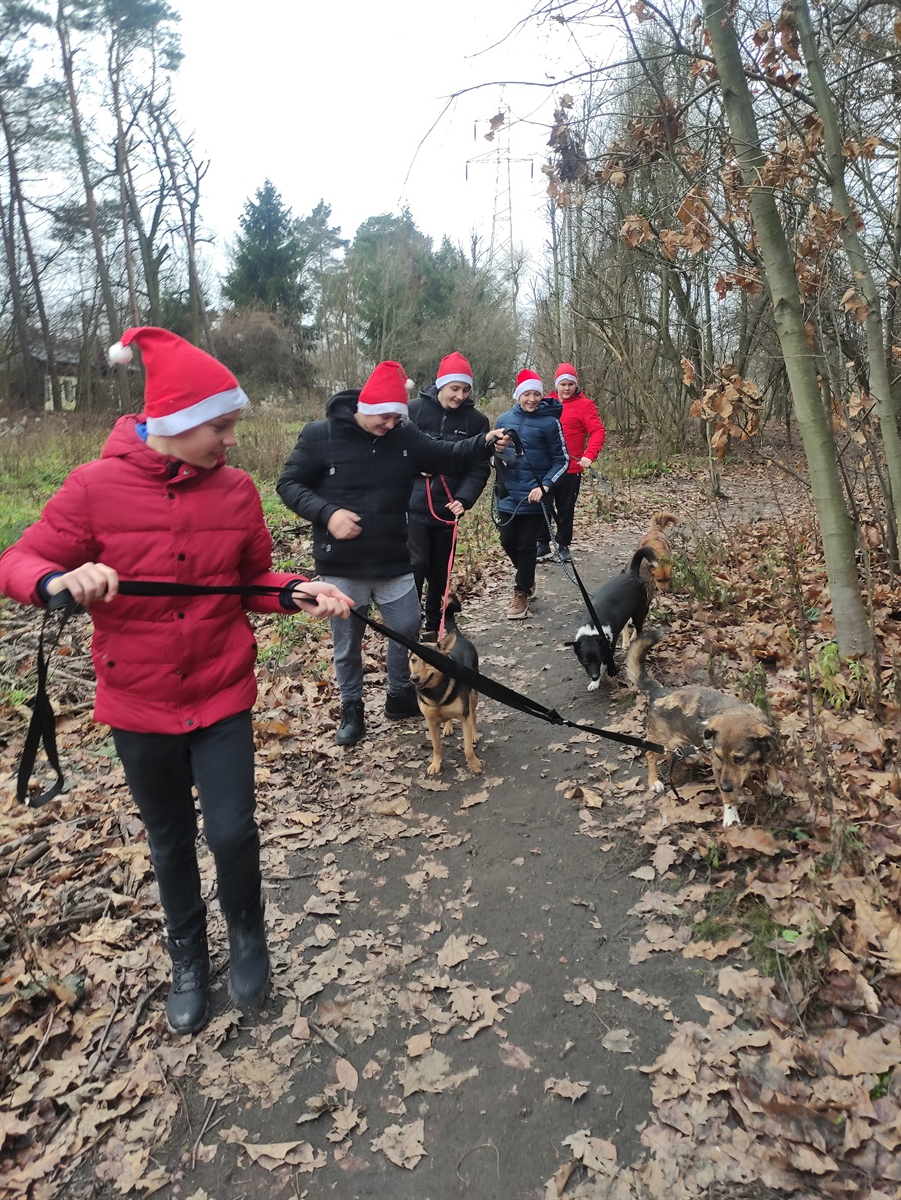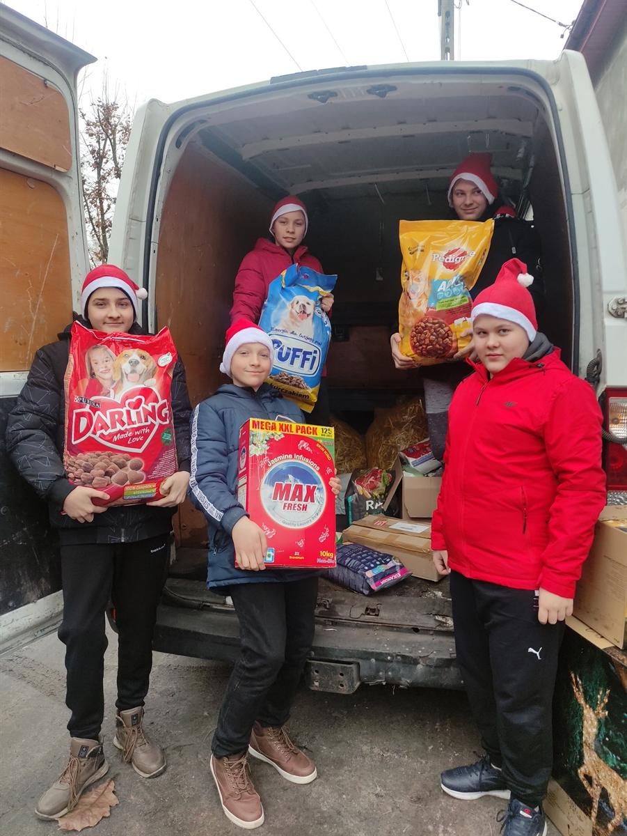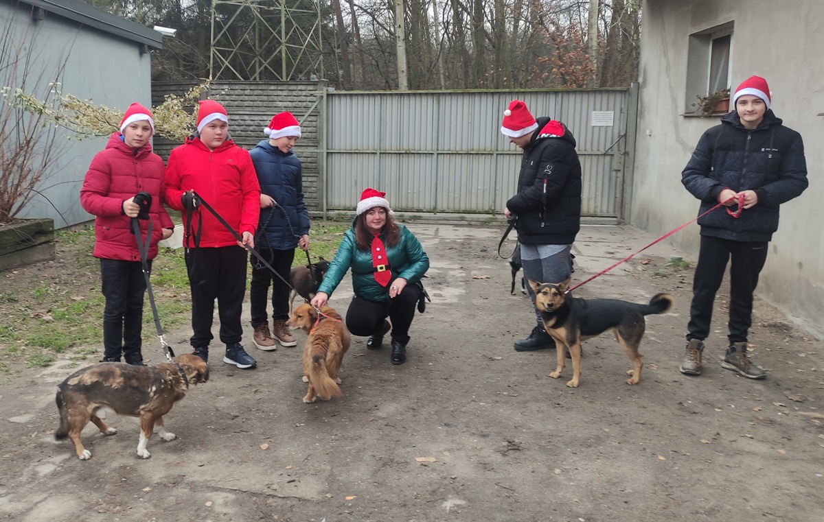 W grudniu Samorząd Uczniowski zakończył zbiórkę darów dla bezdomnych zwierząt w schronisku w Zgierzu, przyjmującym zwierzęta z naszej gminy. Przed Świętami pięciu chłopców pod opieką pani Agaty Karlińskiej dostarczyło zebrane produkty do schroniska. Część karmy pochodziła z ubiegłorocznej zbiórki. Po przyjeździe na miejsce i przeniesienie produktów chłopcy wyprowadzili domowe psy na spacer. Karolek, Tosia, Never, Slajd i Robin były szczęśliwe, że mogą pobiegać po lesie. Później młodzież z zainteresowaniem obejrzała boksy ze zwierzętami. Obecnie w schronisku znajdują się 103 psy i sporo kotów. Schronisko prezentuje się czysto, a zwierzęta są bardzo zadbane. Na adopcję przed Świętami czekały trzy psy. Do zabrania jest też 5 szczeniaków, których mama Dorotka już czeka na nowy dom. Dziękujemy Panu Wójtowi Dariuszowi Misztalowi za umożliwienie przewiezienia darów do schroniska, a Rodzicom za hojność.