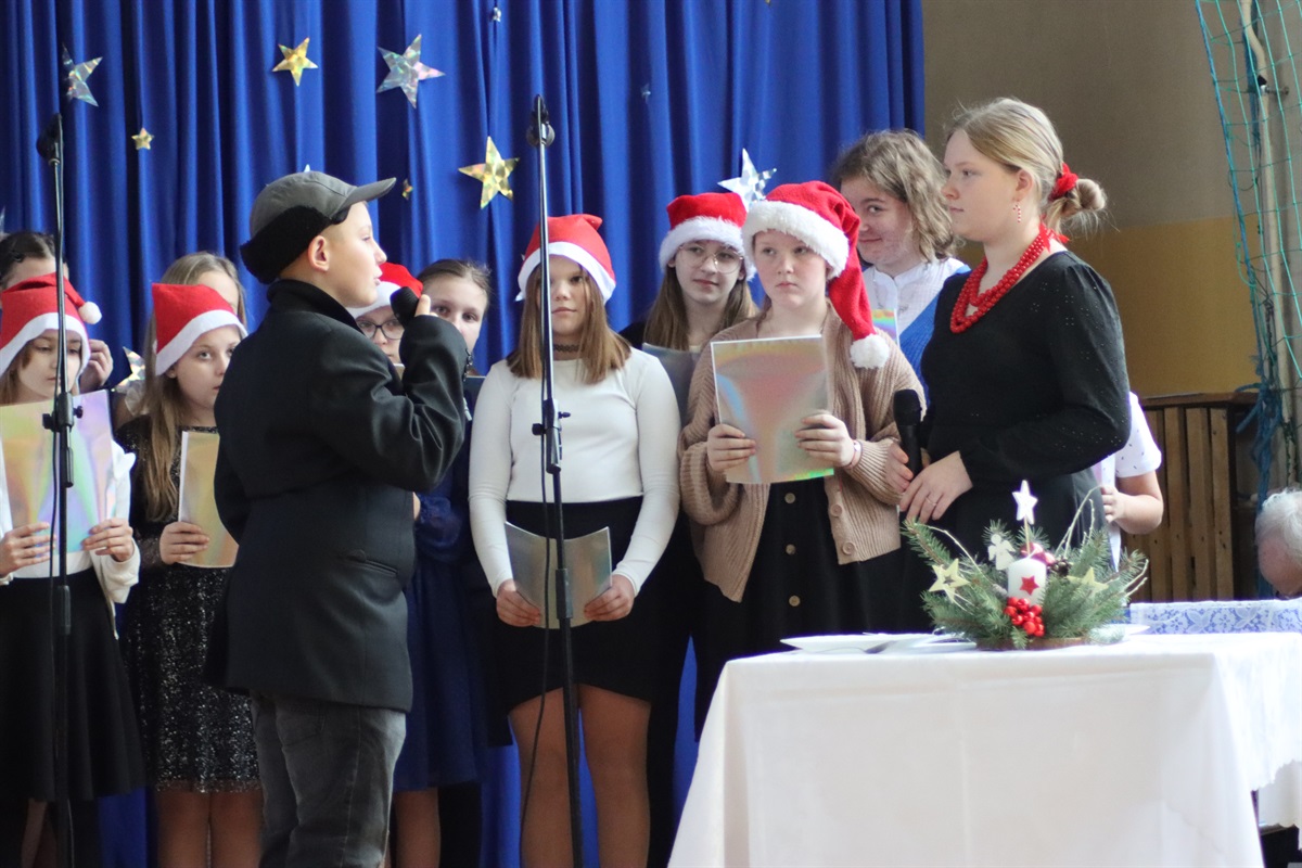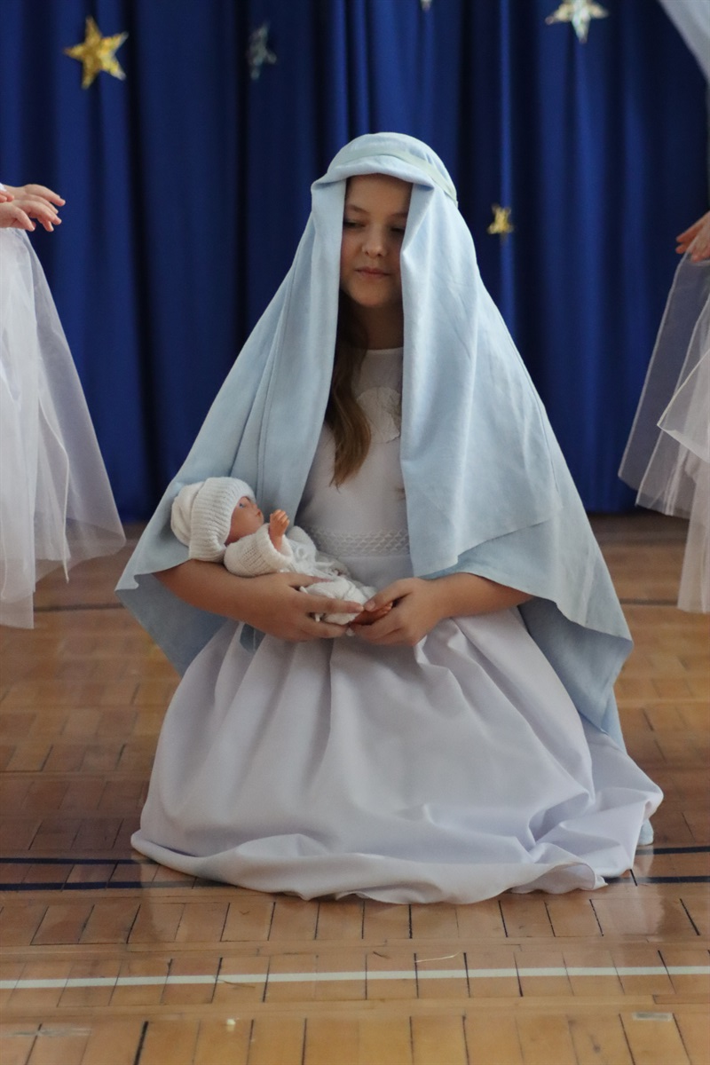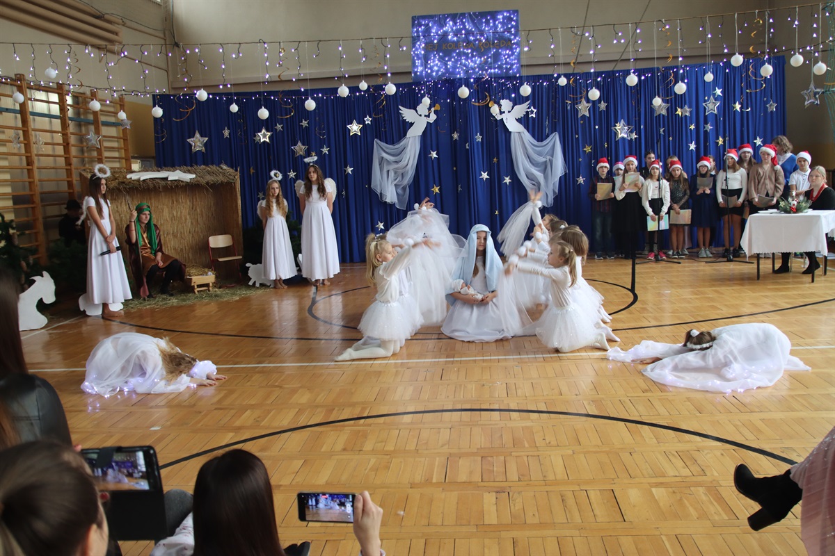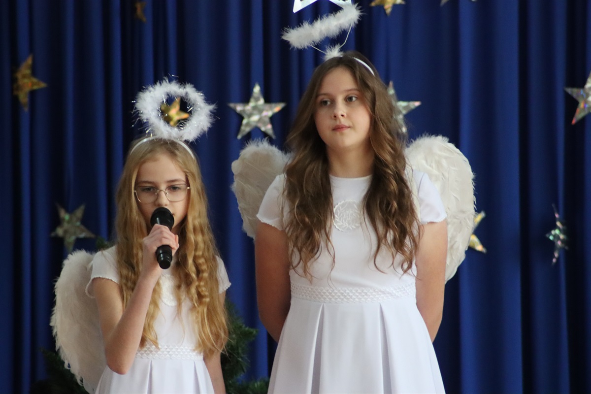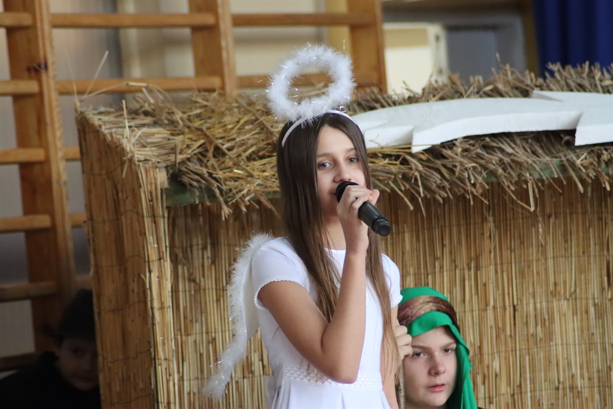W świąteczny magiczny nastrój wprowadzili nas wychowankowie świetlicy oraz dziewczynki z klasy 06, którzy 21 grudnia w ramach Wigilii szkolnej zaprezentowali przedstawienie jasełkowe.