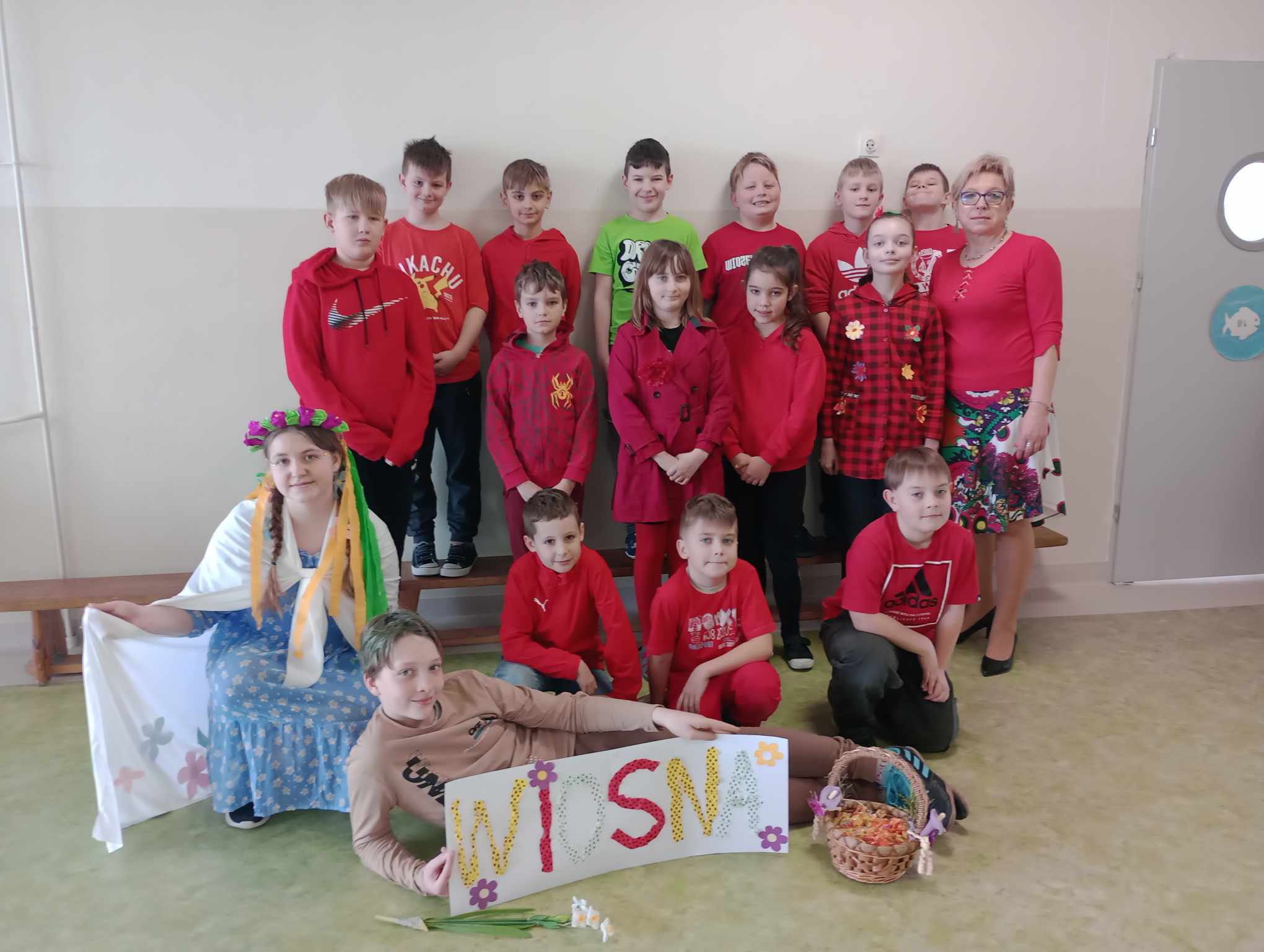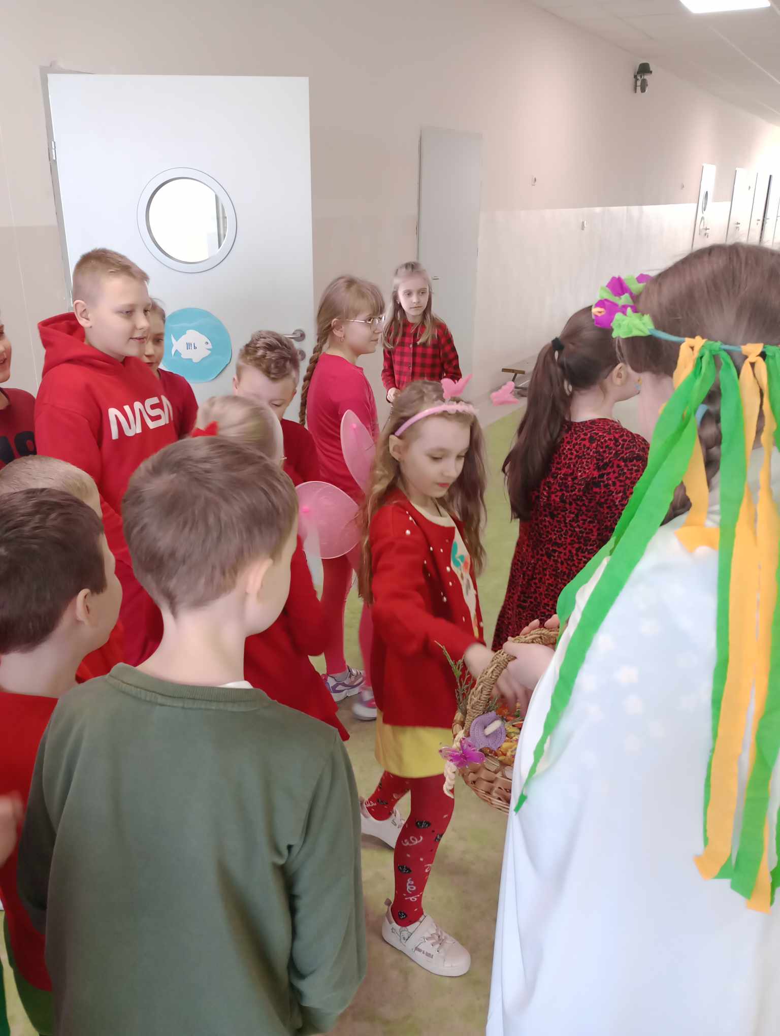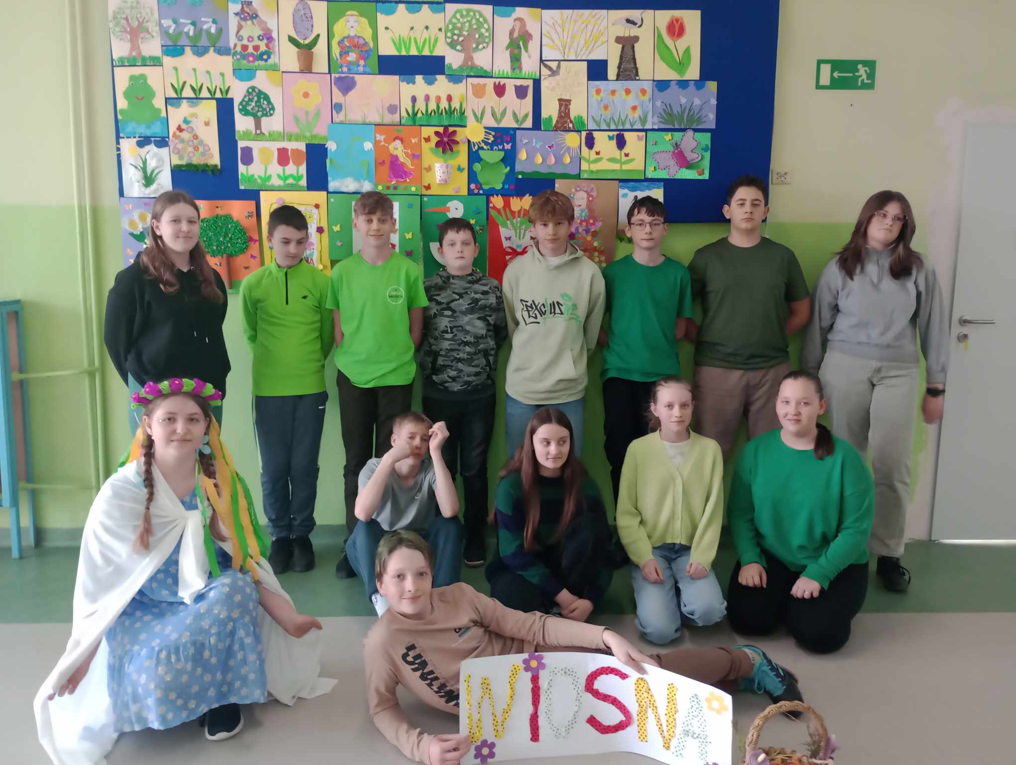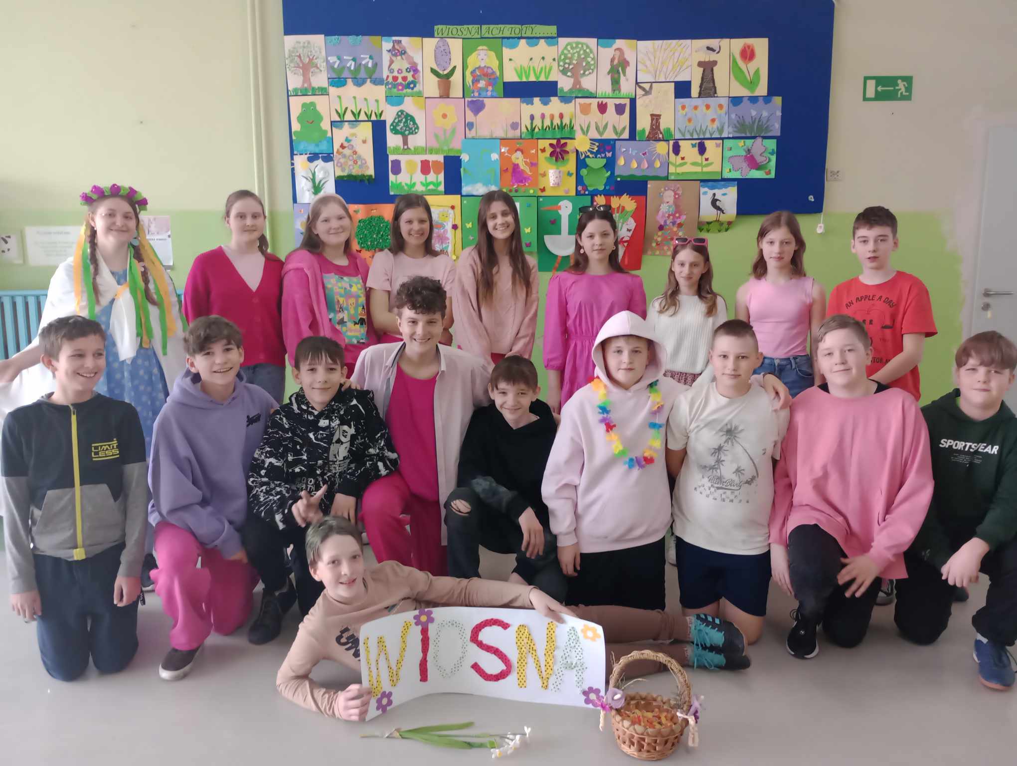 Pierwszy dzień wiosny w naszej szkole obfitował w wyjątkowe atrakcje dzięki Samorządowi Uczniowskiemu. Uczniowie, zgodnie z wcześniejszym losowaniem, przyszli w kolorowych strojach. Pojawiła się też Pani Wiosna, która rozdawała słodycze. Nietypowy był widok uczniów niosących książki i przybory w pufach, walizkach czy chlebakach zamiast w tradycyjnych plecakach czy tornistrach. Ta niecodzienna inwencja była zabawnym elementem dnia, podkreślającym nietuzinkowy charakter świętowania. Czekamy na kolejne, równie inspirujące, działania Samorządu Uczniowskiego.