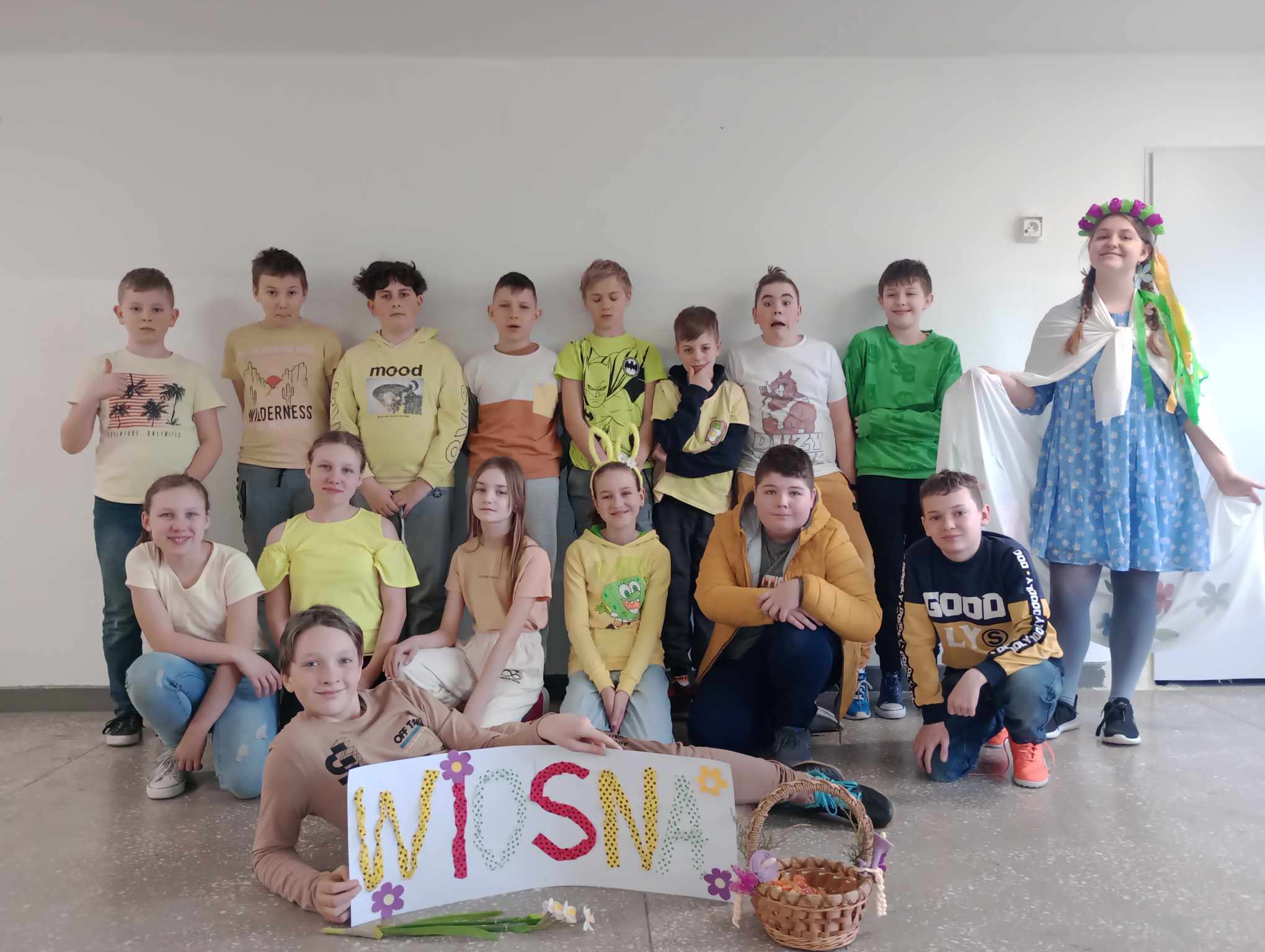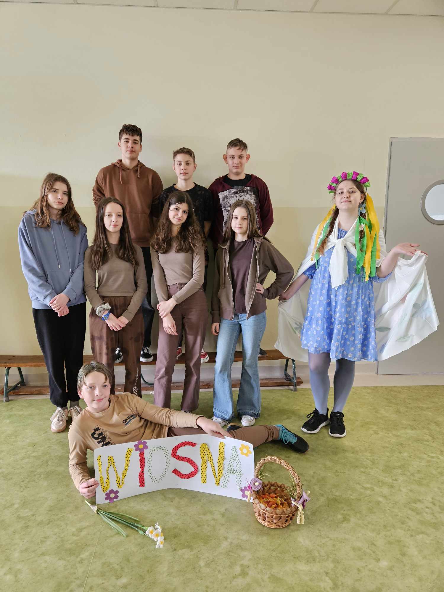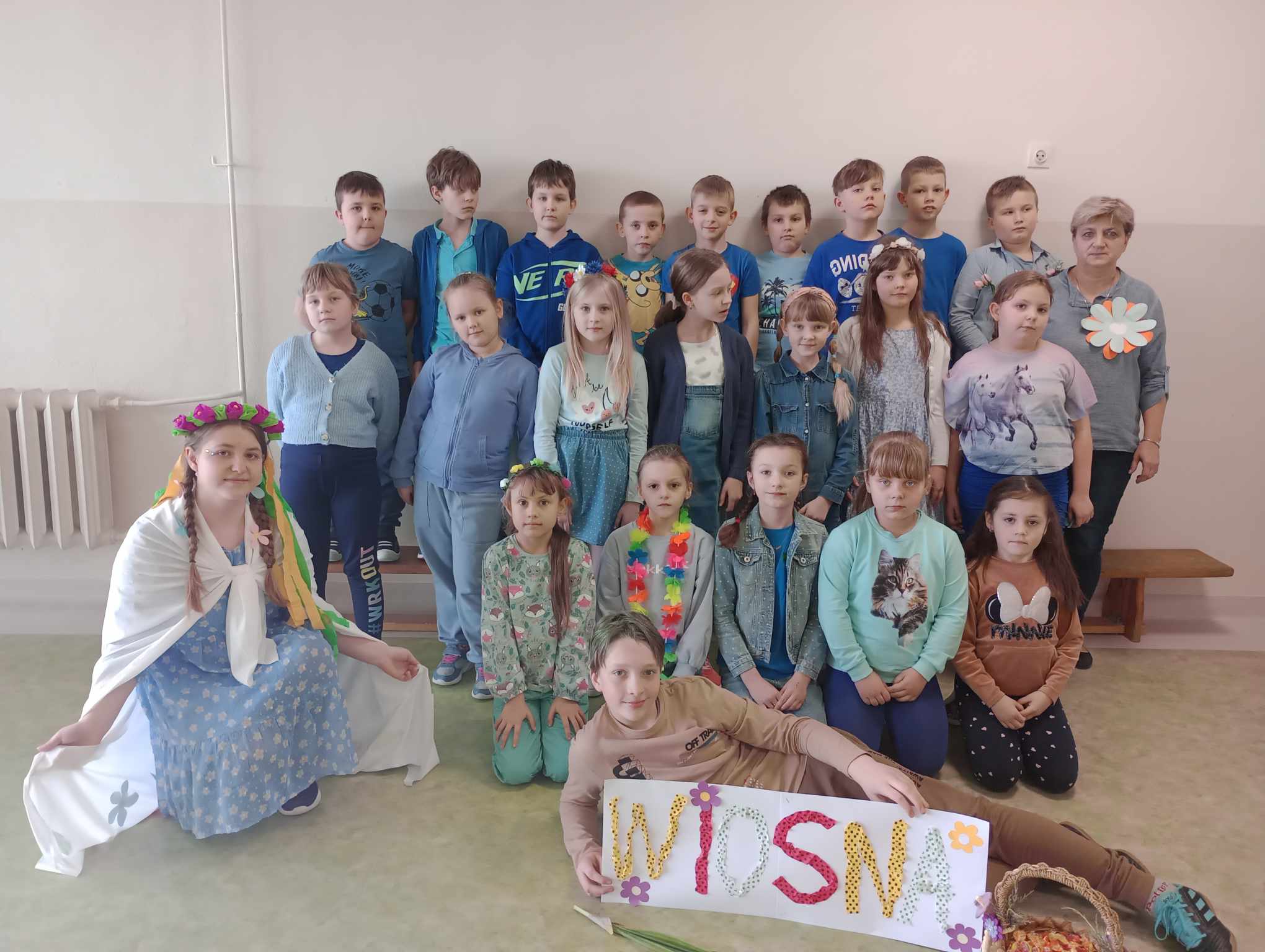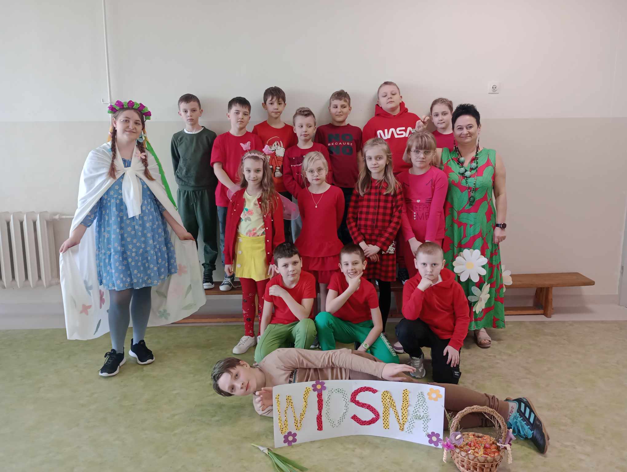 Pierwszy dzień wiosny w naszej szkole obfitował w wyjątkowe atrakcje dzięki Samorządowi Uczniowskiemu. Uczniowie, zgodnie z wcześniejszym losowaniem, przyszli w kolorowych strojach. Pojawiła się też Pani Wiosna, która rozdawała słodycze. Nietypowy był widok uczniów niosących książki i przybory w pufach, walizkach czy chlebakach zamiast w tradycyjnych plecakach czy tornistrach. Ta niecodzienna inwencja była zabawnym elementem dnia, podkreślającym nietuzinkowy charakter świętowania. Czekamy na kolejne, równie inspirujące, działania Samorządu Uczniowskiego.