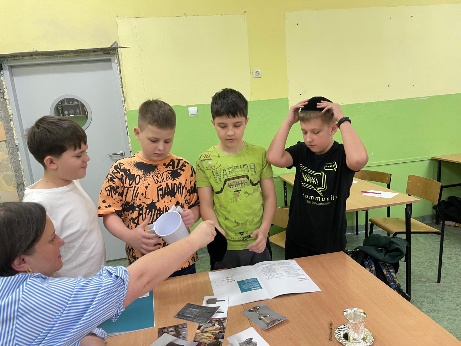 Warsztaty edukacyjne „Muzeum w pudełku. Miasteczko Malki” w klasie 5B.