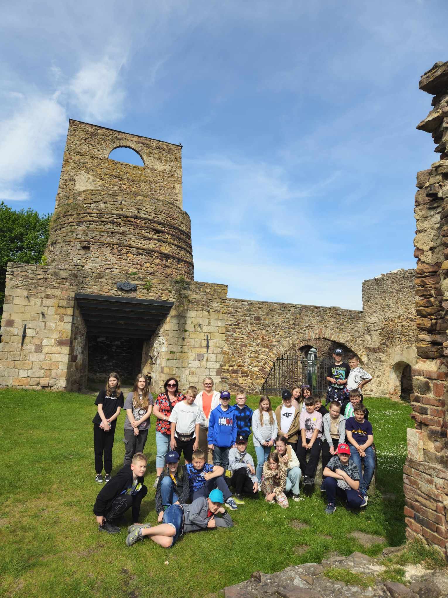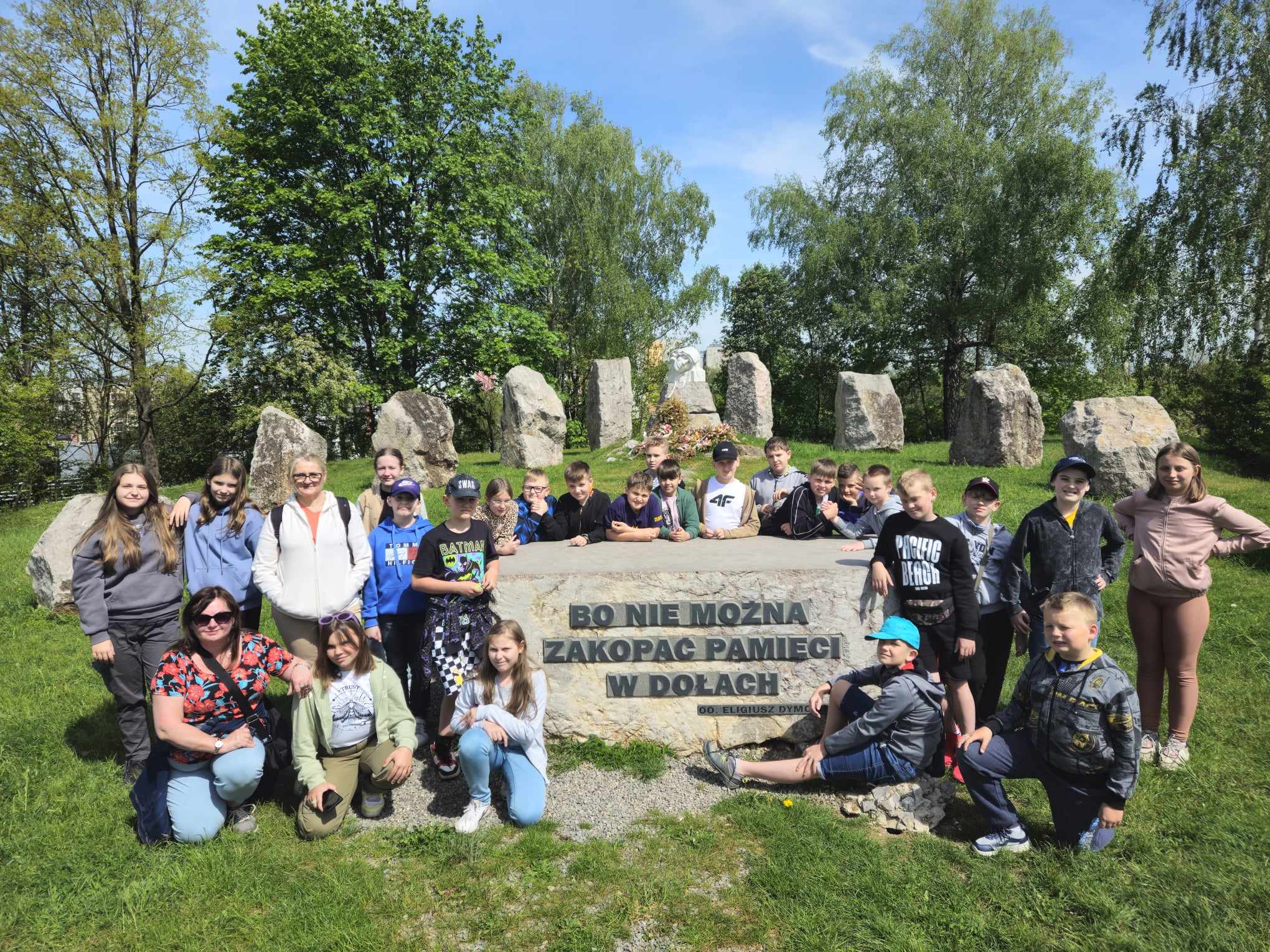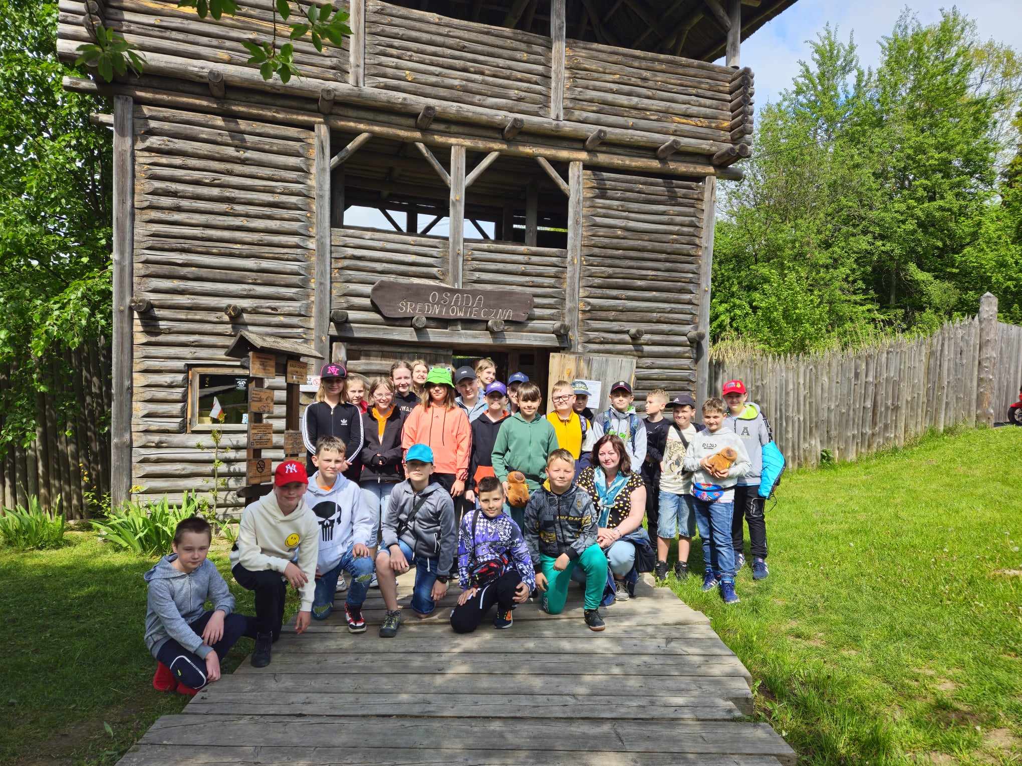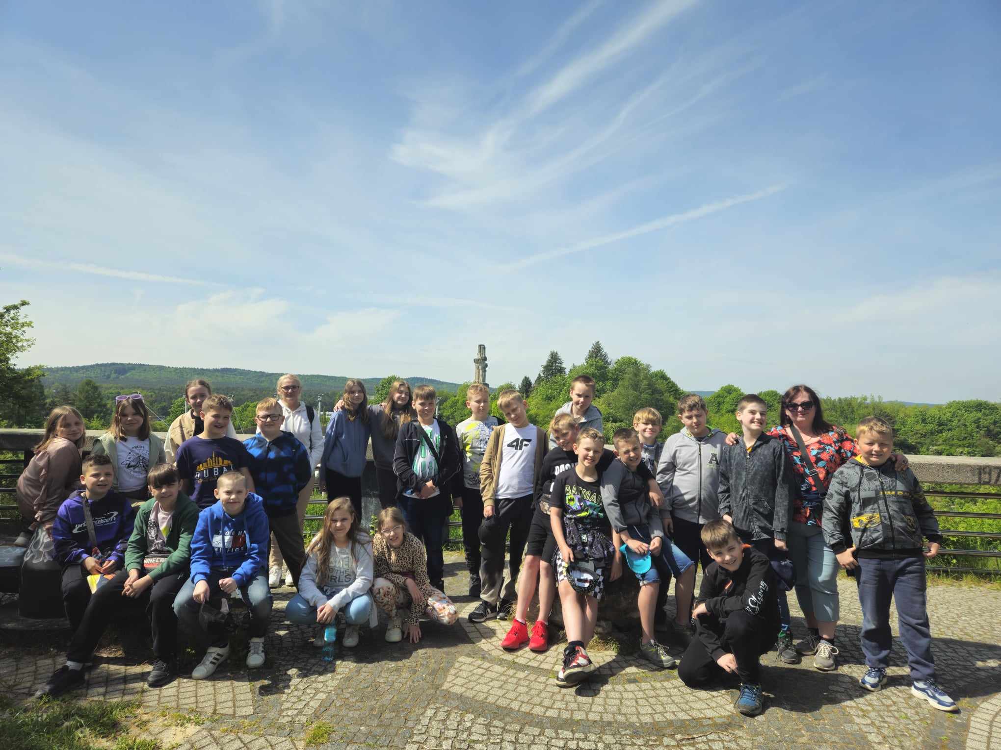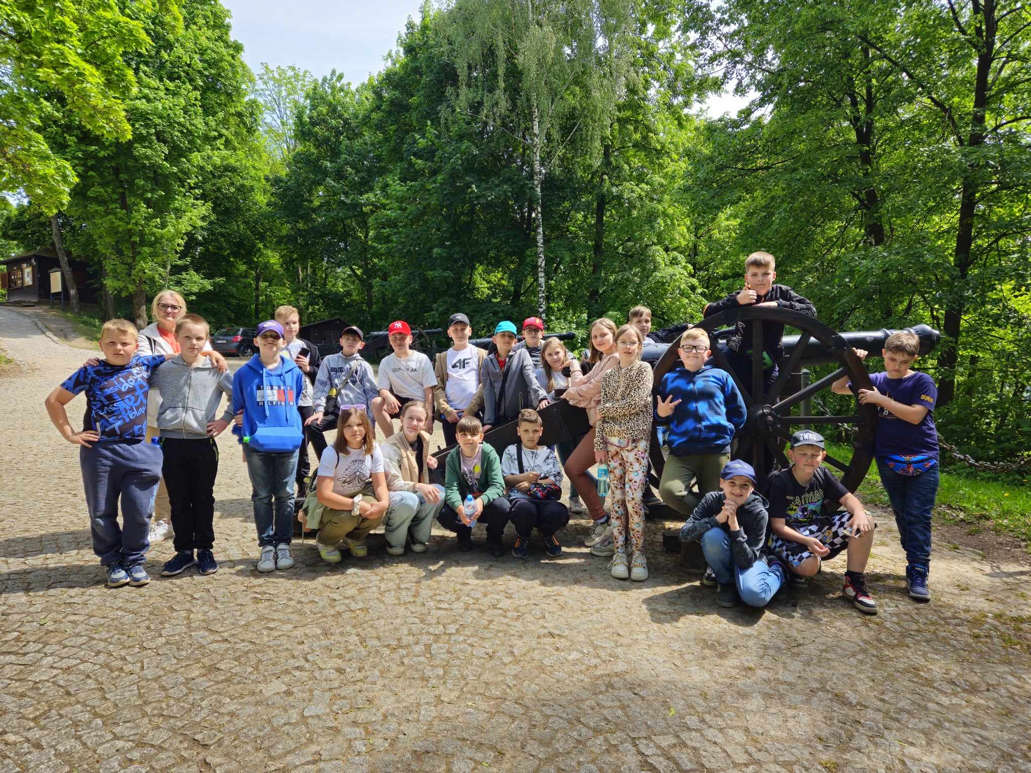 W dniach 7-8 maja br. uczniowie klasy 4 i 7a pojechali na wycieczkę w Góry Świętokrzyskie.  Pierwszym punktem programu były warsztaty garncarskie w osadzie średniowiecznej w Hucie Szklanej. Najpierw jednak dzieci odwiedziły m.in. warsztat kowala, chaty tkaczki, zielarki. Następnie udały się przez puszczę jodłową na Święty Krzyż. W Bazylice Mniejszej braci oblatów usłyszały historię Relikwii Drzewa Krzyża Świętego i miały możliwość obejrzenia eksponatów przywiezionych z misji. Z wieży klasztoru podziwiały panoramę gór i gołoborze. Po zejściu na dół był czas na zakup pamiątek. W drodze do trzygwiazdkowego pensjonatu wycieczkowicze zatrzymali się, by obejrzeć ruiny zamku Krzyżtopór w Ujeździe.  Zachwytom nie było końca, zwłaszcza po słowach pani przewodnik o zaginionych skarbach. W sali balowej grupa zatańczyła belgijkę. Już tylko kilometr dzielił od pensjonatu, w którym na wszystkich czekał smaczny dwudaniowy obiad. Po zakwaterowaniu był jeszcze czas na zobaczenie wykopalisk i zabawy na świeżym powietrzu. Następnego dnia po obfitym śniadaniu grupa udała się do rezerwatu przyrodniczego Kadzielnia, by podziwiać skały wapienne i nową atrakcję- wodospad. Z Kielc po krótkim przejeździe udano się do średniowiecznego zamku w Chęcinach, by tam zajrzeć do skarbca i z baszty podziwiać widoki. Sporo czasu młodzież spędziła w sali tortur i z wizytą u kata, nikt jednak w żaden sposób nie ucierpiał. Później przyszedł czas na spotkanie z jednym z najstarszych drzew w Polsce, dębem Bartek. Jego pień i konary zrobiły wrażenie na wszystkich uczestnikach. Następna atrakcją były ruiny XIX - wiecznego pieca hutniczego „Józef” w Samsonowie. Gonitwom i zabawom nie było końca. Nadszedł jednak czas powrotu do domu i zmęczeni choć pełni wrażeń wycieczkowicze dotarli pod szkołę, gdzie wpadli w ramiona stęsknionych rodziców. Wycieczka była bardzo udana i na pewno długo pozostanie we wspomnieniach. Dziękujemy Rodzicom za możliwość wyjazdu, a opiekunkom pani Bogusławie Wochnie i pani Agacie Karlińskiej za troskliwą opiekę podczas wycieczki.