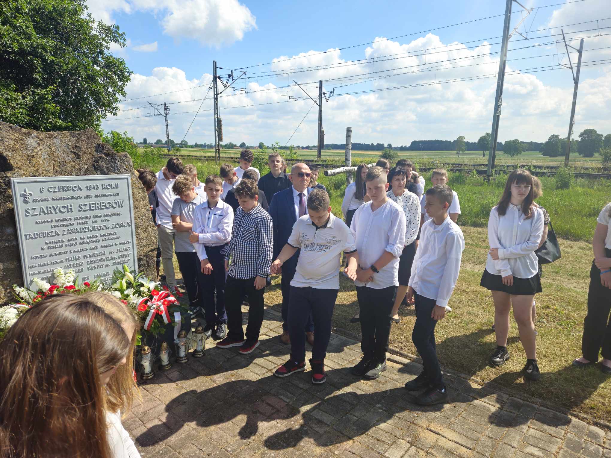 6 czerwca w 81. rocznicę operacji „Madryt”, która miała miejsce na terenie naszej gminy, przedstawiciele społeczności szkolnej na czele z Dyrekcją Panem Andrzejem Szklarkiem i Panią Renatą Rechcińską oraz nauczycielkami języka polskiego uczcili pamięć bohaterów. Władze gminy reprezentowali Pan Wójt Dariusz Misztal, przewodnicząca Rady Gminy Pani Karolina Rauch oraz przewodniczący Komisji Oświatowej Pan Sebastian Adamczyk. Pan Wójt przekazał cenne wiadomości historyczne dotyczące wydarzeń z 1943 roku. Delegacje złożyły kwiaty I zapaliły znicze pod obeliskiem Szarych Szeregów upamiętniającym akcję wysadzenia mostu kolejowego na rzece Wolbórce.
