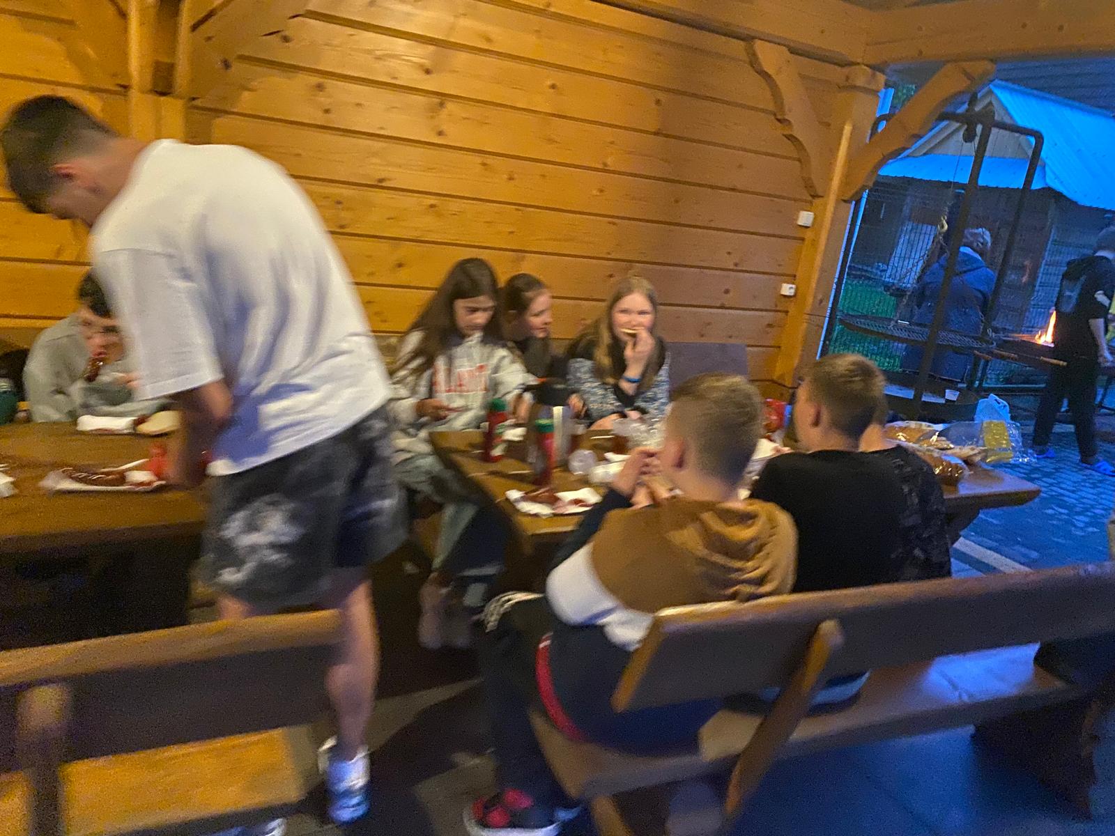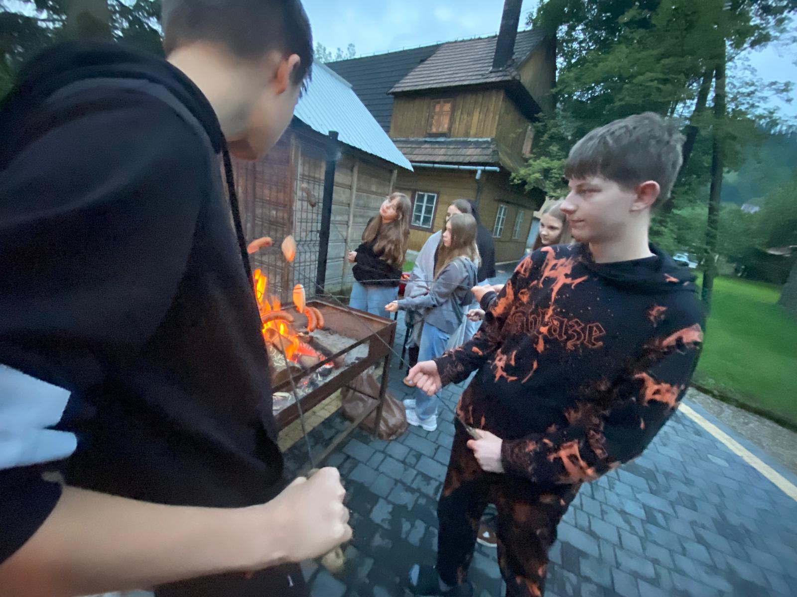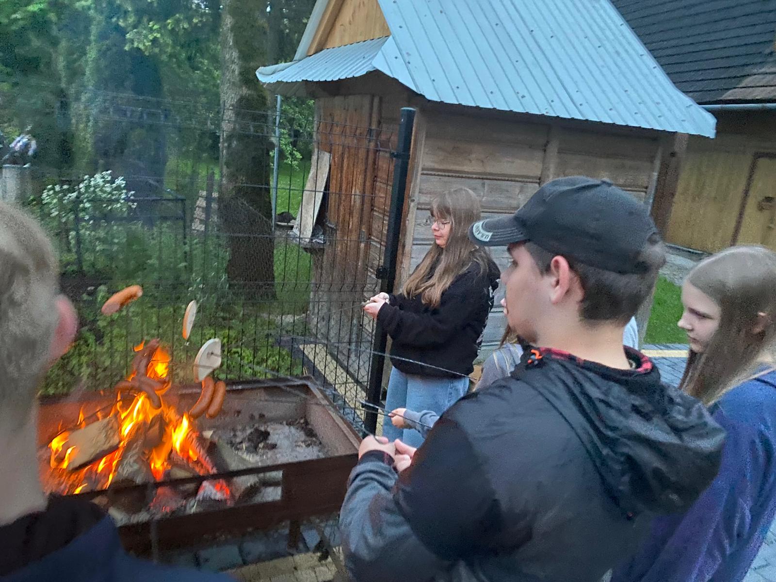 dotykania. Wieczorem bawiliśmy się przy ognisku jedząc pieczoną kiełbaskę,