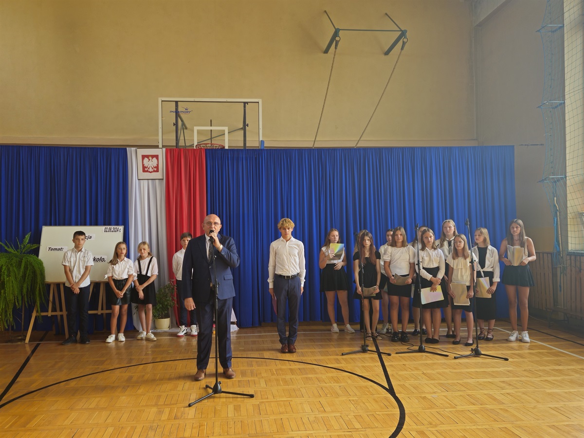 2 IX w sali gimnastycznej Zespołu Szkolno-Przedszkolnego odbyła się uroczysta inauguracja roku szkolnego 2024/25.  Obecnością swą ten ważny dla szkolnej wspólnoty dzień uświetnili Pan Wójt Gminy Będków Dariusz Misztal, Proboszcz Parafii Narodzenia Najświętszej Marii Panny w Będkowie Ksiądz Robert Kaczmarek, Przewodnicząca Rady Gminy w Będkowie Pani Karolina Rauch, Przewodniczący Komisji Oświaty Pan Sebastian Adamczyk.