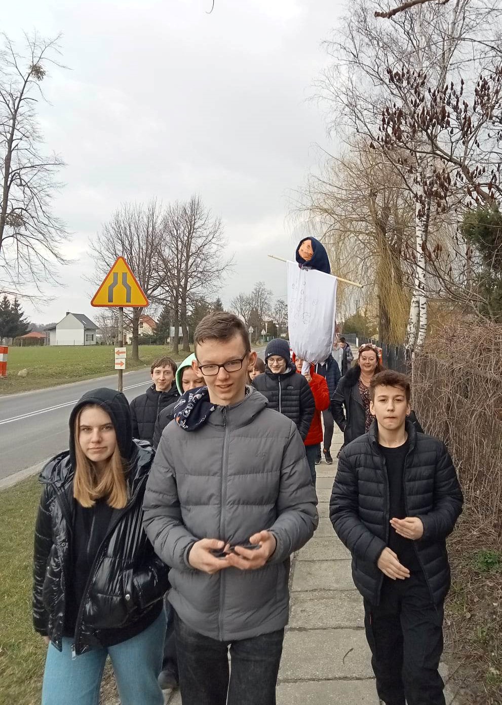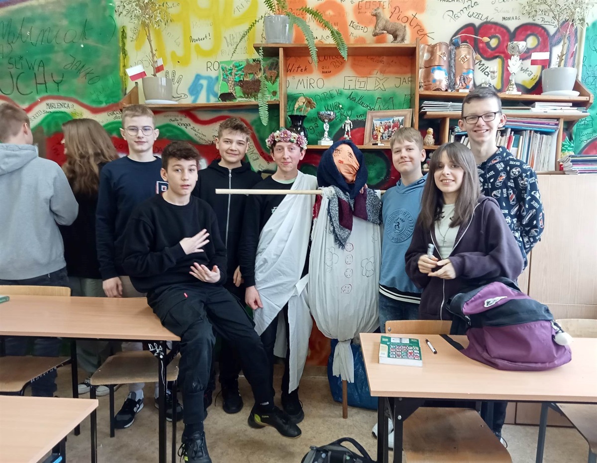 i wrzucono do wody, by wraz z nią odeszły śniegi i mrozy.  21 marca br. nie tylko najmłodsi przedstawiciele społeczności szkolnej w Będkowie powitali wiosnę. Zgodnie z tradycją pożegnać zimę postanowili również ósmoklasiści, którzy wspólnie wykonali ekologiczną Marzannę. Zwyczaj topienia Marzanny sięga jeszcze pogańskich czasów i jest świadectwem żywotności kultury naszych przodków.