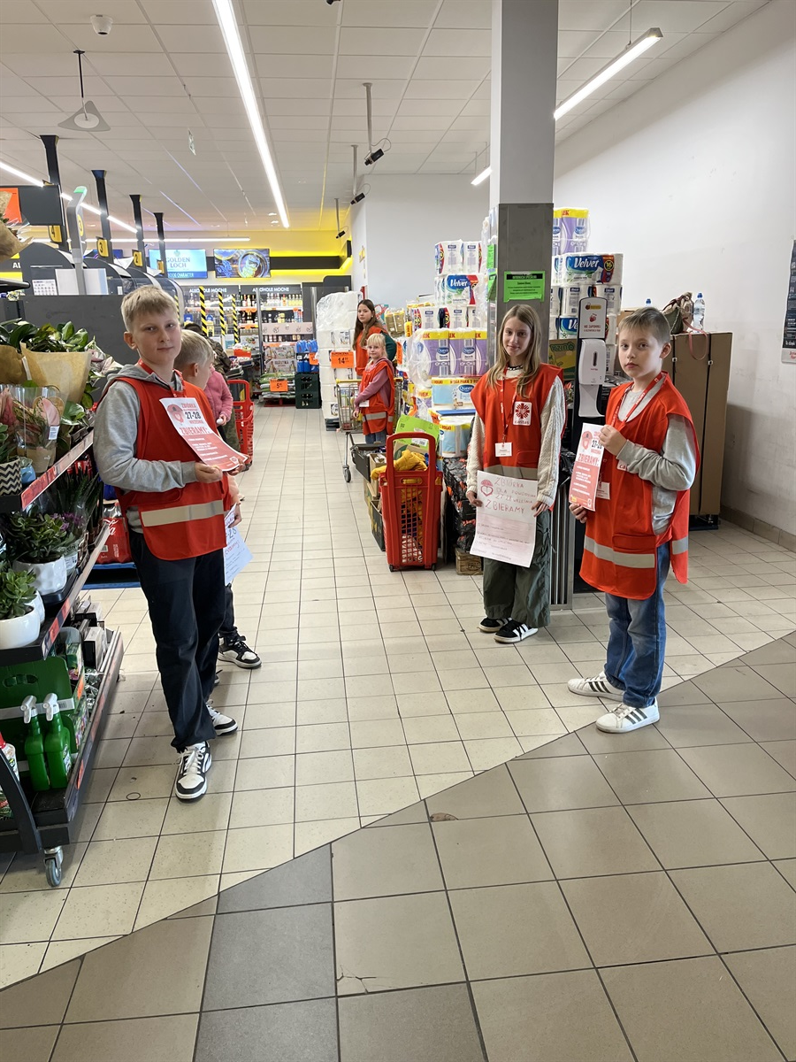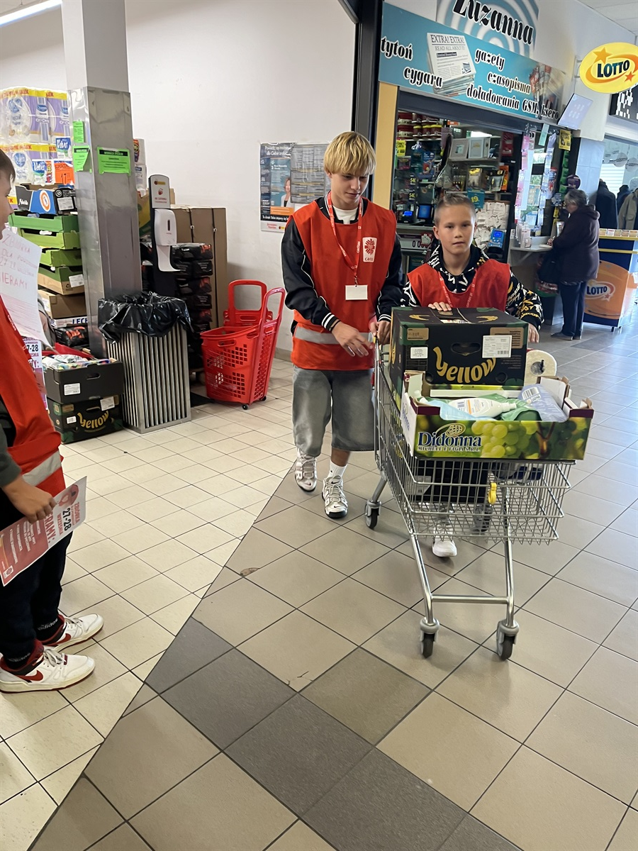 Dziękujemy Rodzicom za pomoc w transporcie wolontariuszy oraz produktów ze zbiórki. Podziękowania należą się również Pracownikom sklepu Biedronka w Moszczenicy za pomoc