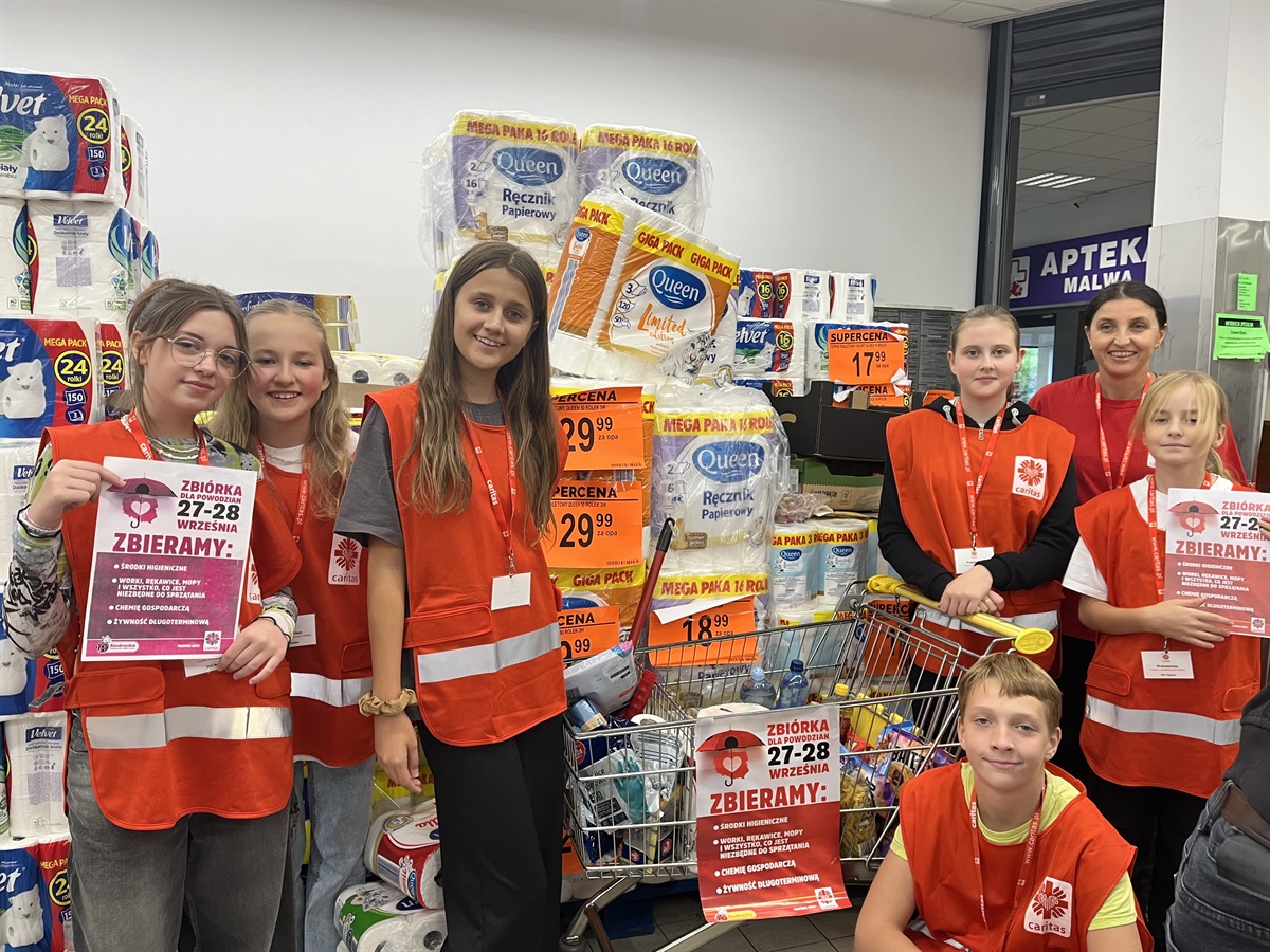 W dniach 27-28 września 2024 r. czterdziestu wolontariuszy ze Szkolnego Koła Caritas, działającego przy ZSP w Będkowie włączyło się w Ogólnopolską Zbiórkę Caritas Dla Powodzian. Zbiórka została przeprowadzona w sklepie Biedronka w Moszczenicy.
