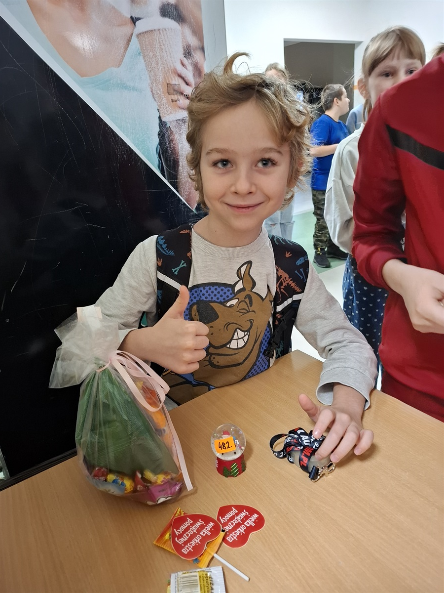 Przez ostatnie dni w szkole wielkim powodzeniem cieszyła się Loteria Mikołajkowa, wspierająca puszki WOŚP naszych wolontariuszy. Wzruszeniom i emocjom nie było końca, bo atrakcyjne gadżety przyniesione przez licznych sponsorów były marzeniem wielu. Za świetną zabawę wszystkim serdecznie dziękujemy. Organizatorki - Ewa Skorupska i Anna Habram.