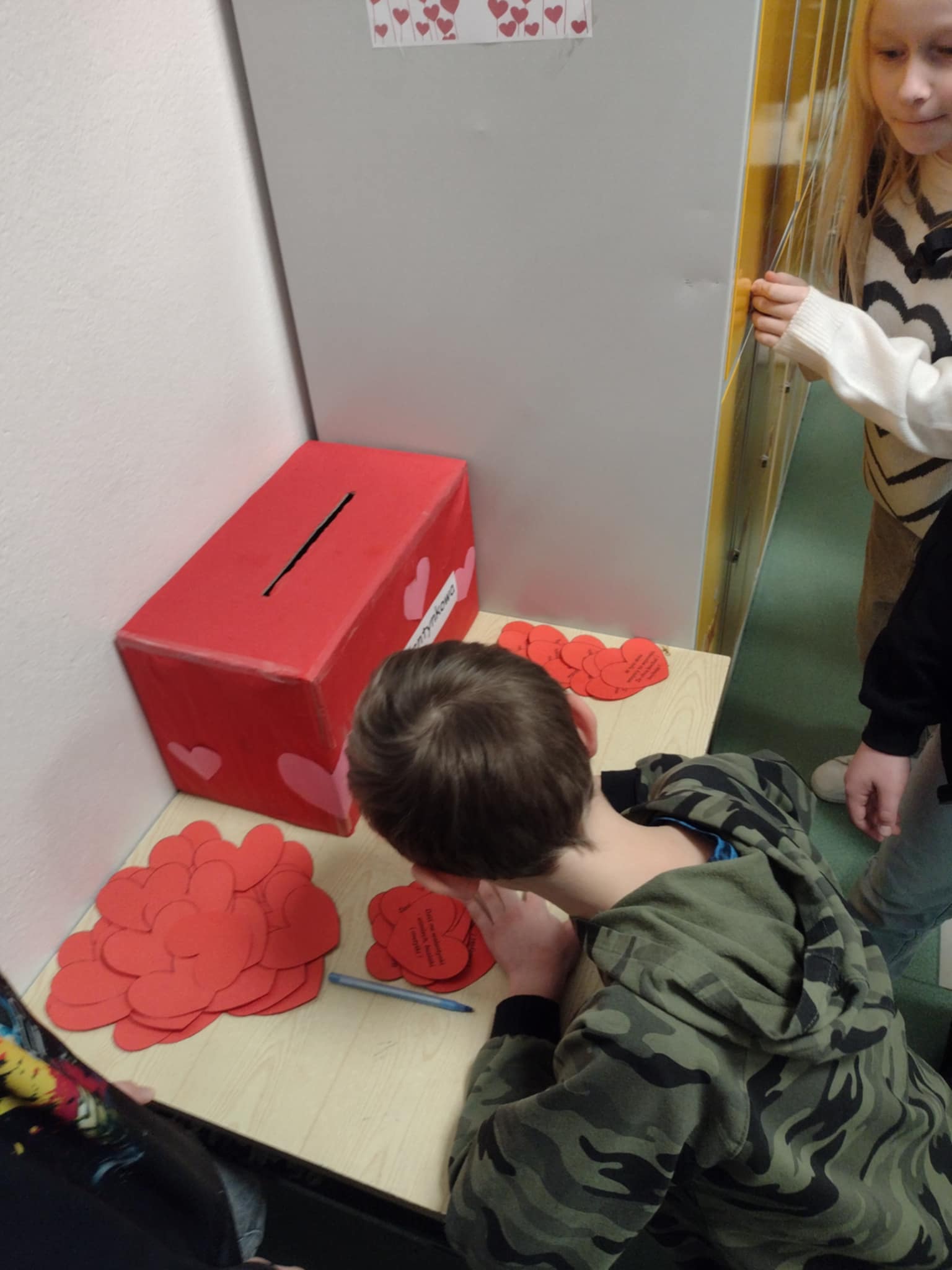 Tradycją naszej szkoły stały się obchody święta zakochanych. Uczniów pragnących napisać parę ciepłych słów wsparł samorząd, który zorganizował pocztę walentynkową. Każdy mógł wrzucić okolicznościową kartkę, która została przekazana do adresata. Dodatkowo szkolny Amor pochował małe serduszka. Ich znalazcy mogli liczyć na lizaki - w kształcie serca oczywiście. W akcję szczególnie zaangażowali się Kornelia Chrustowska, Natalia Dulas, Julia Kapka, Łucja Kobalczyk oraz dziewczyny z kl. V. Nad wszystkim dyskretną pieczę sprawowali opiekunowie Samorządu Uczniowskiego - Pani Agata Karlińska i Pan Andrzej Legieziński.