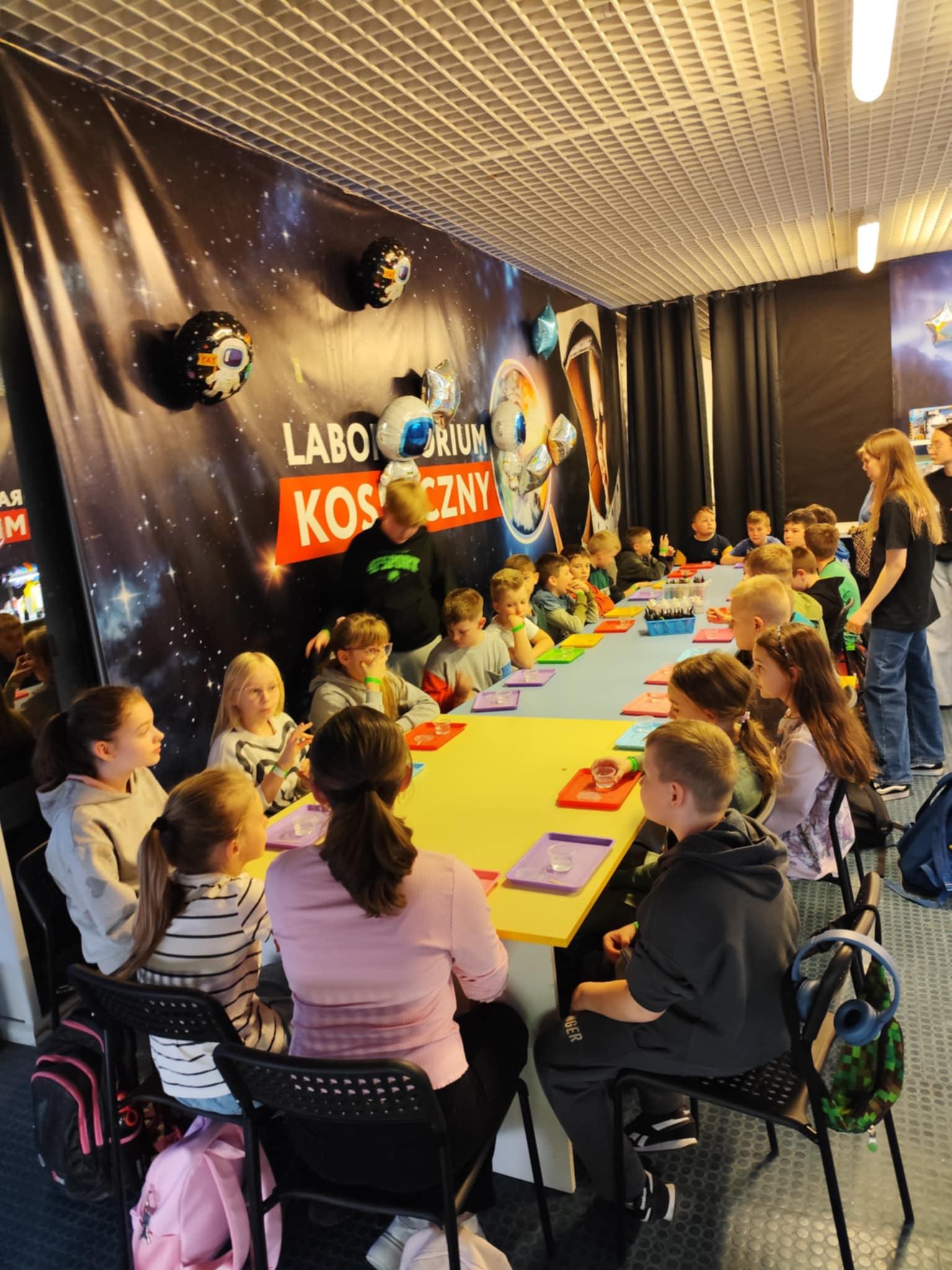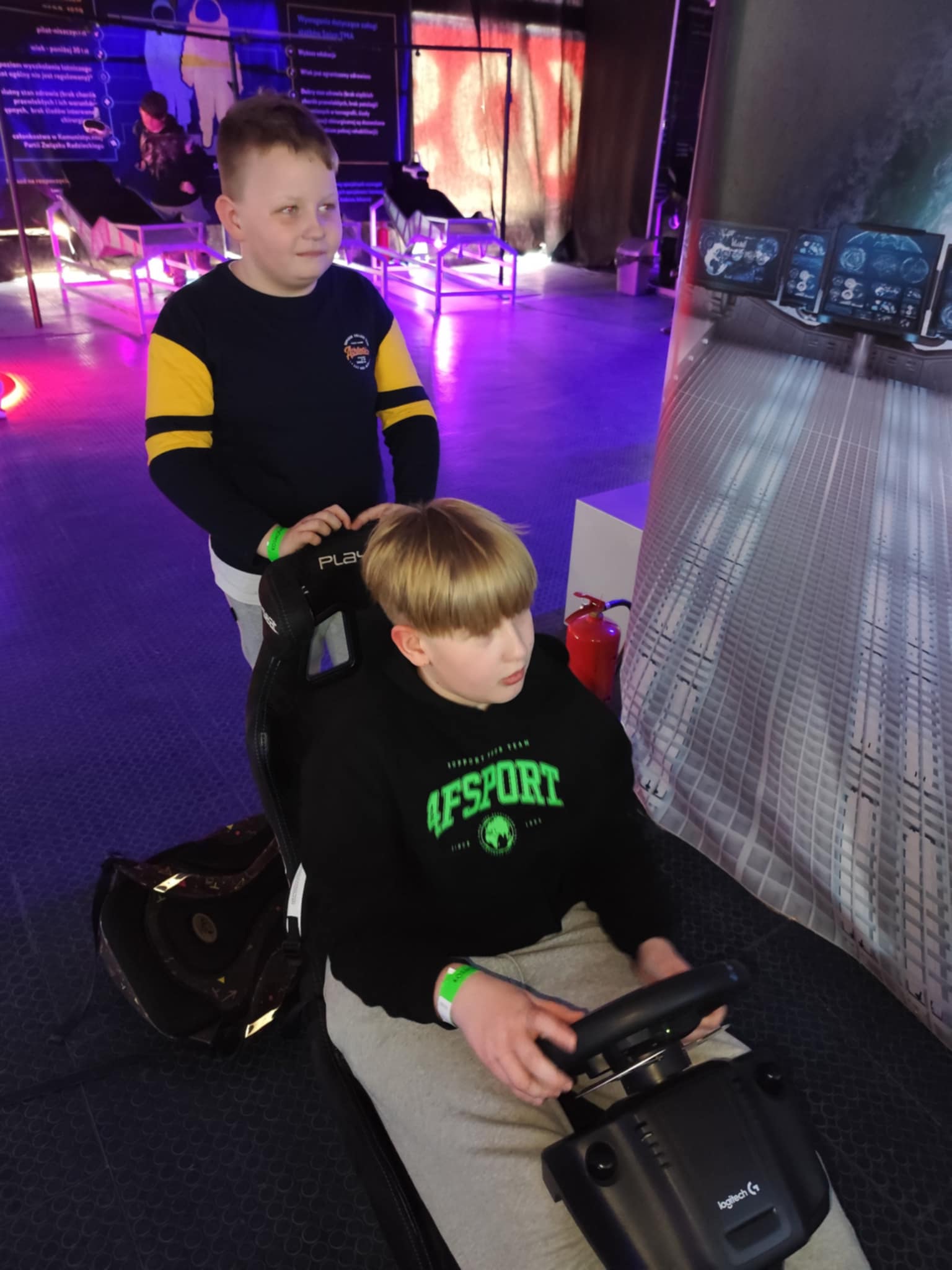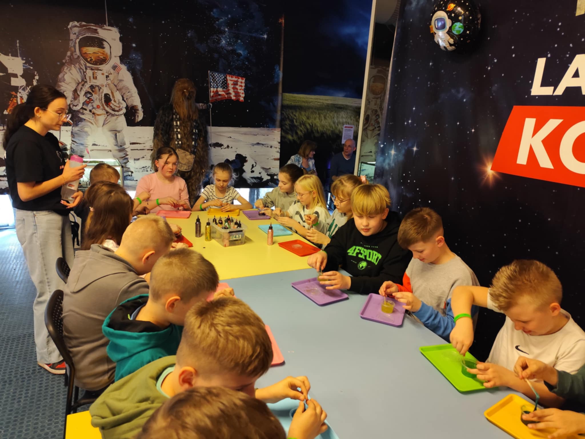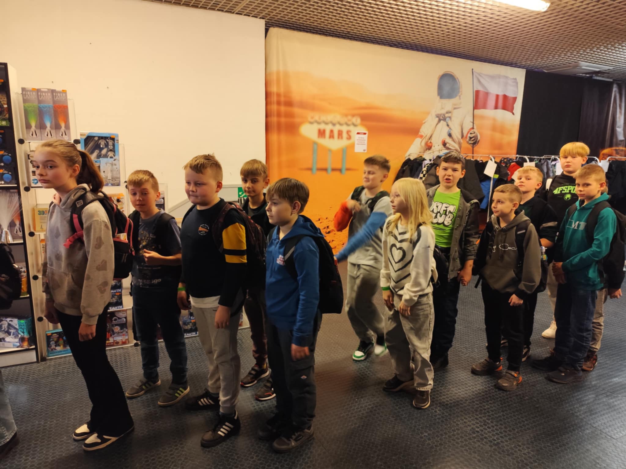 Pierwszego dnia wiosny uczniowie klas czwartych i VIb wybrali się do Kosmoparku w Łodzi. Z wielkim zainteresowaniem poznawali różne strefy kosmiczne, m.in. mogli sprawdzić swoją wagę na niektórych planetach, poczuć jak działa grawitacja na Jowiszu czy obejrzeć seans w planetarium. Ogromną gratką było testowanie sprzętu interaktywnego i multimedialnego, a zwłaszcza symulatorów treningowych lotów kosmicznych dla prawdziwych astronautów. Zapoznali się również z historią podbojów kosmicznych, obejrzeli prawdziwe skafandry astronautów, meteoryty i artefakty kosmiczne. Uwieńczeniem wizyty w tym niezwykłym miejscu były warsztaty kosmiczne. Opiekę nad uczniami sprawowali p. Mariusz Kościsty, p. Andrzej Kolanko, p. Mariusz Olejnik i p. Renata Wochna.