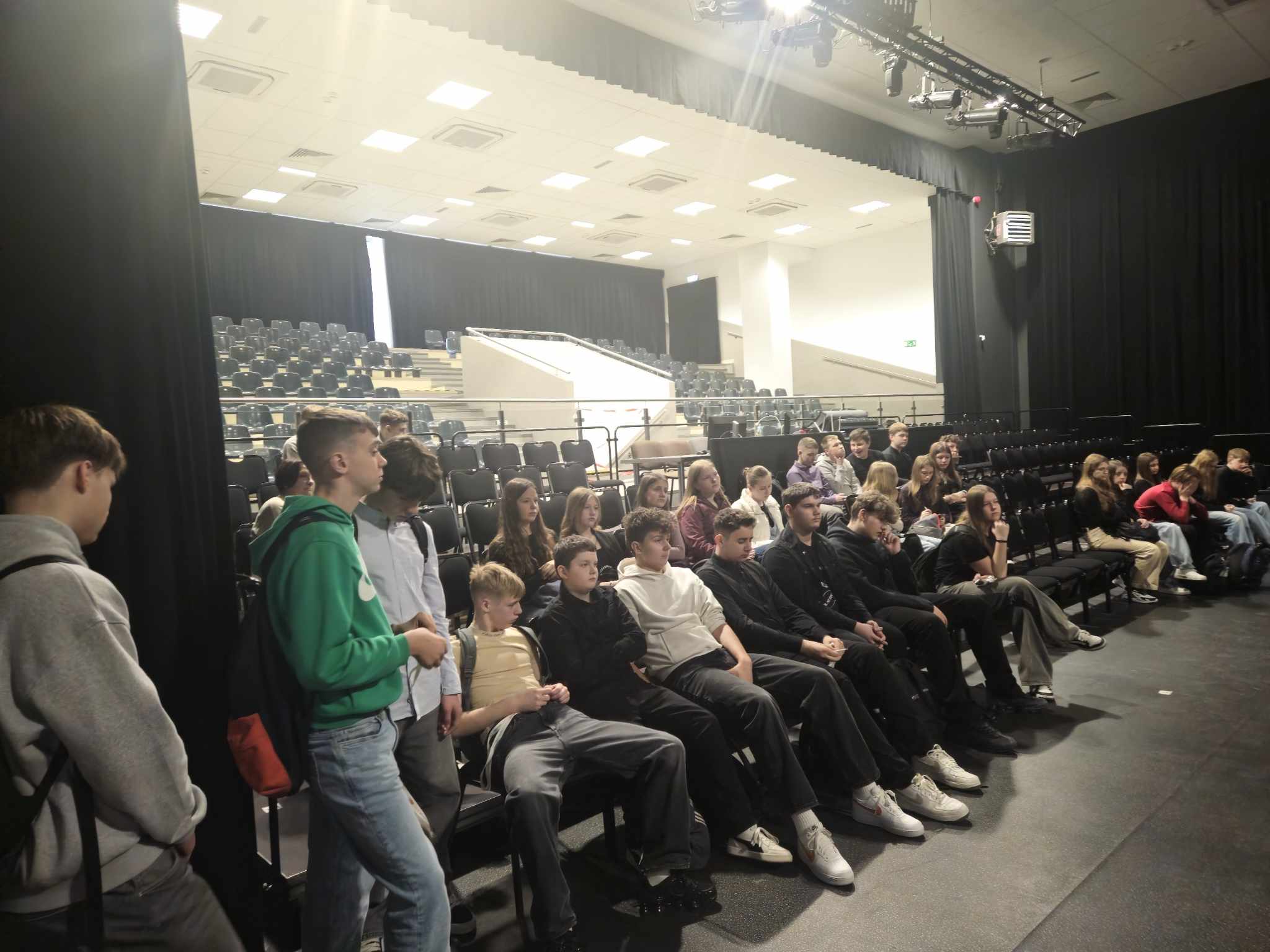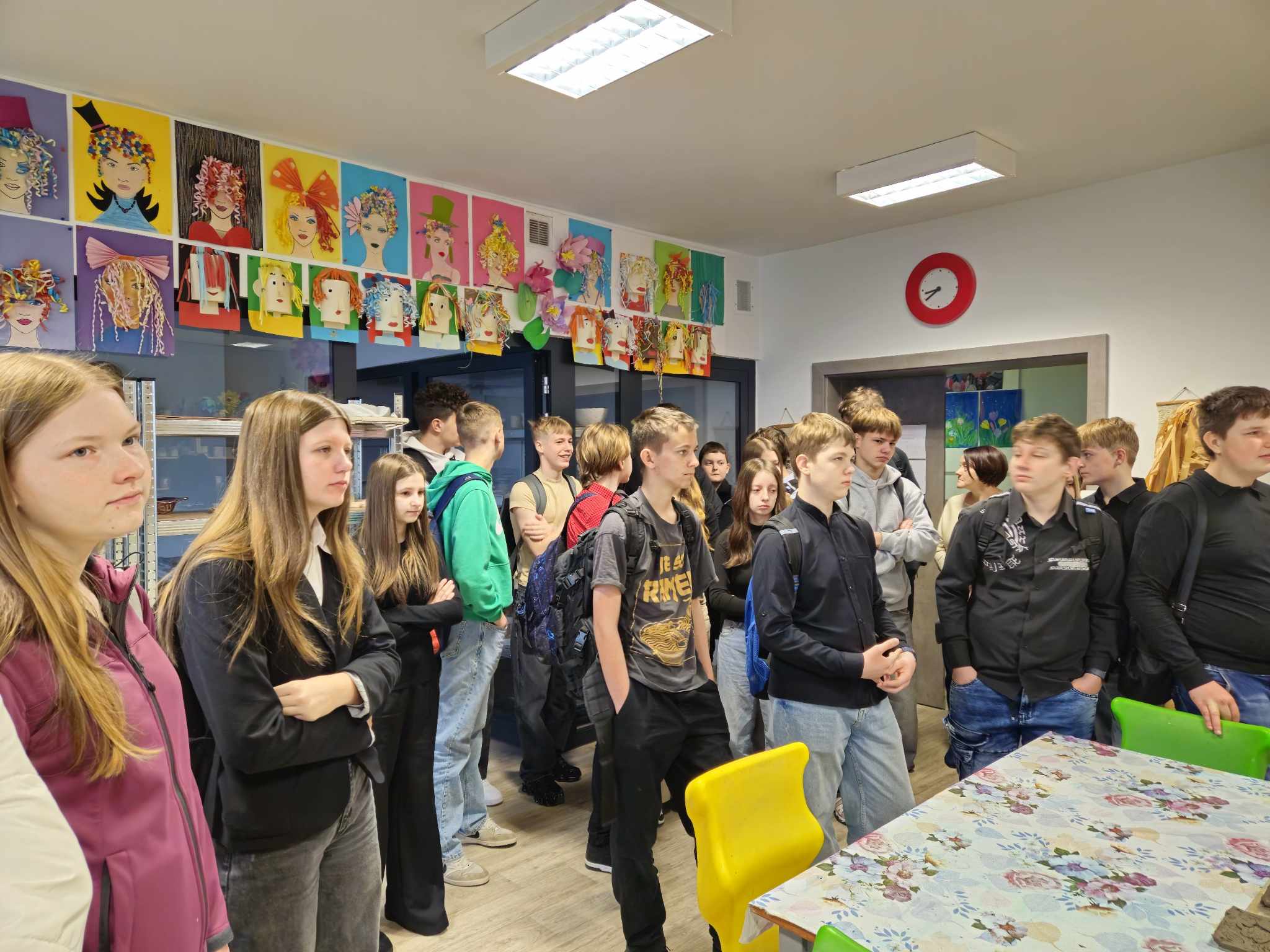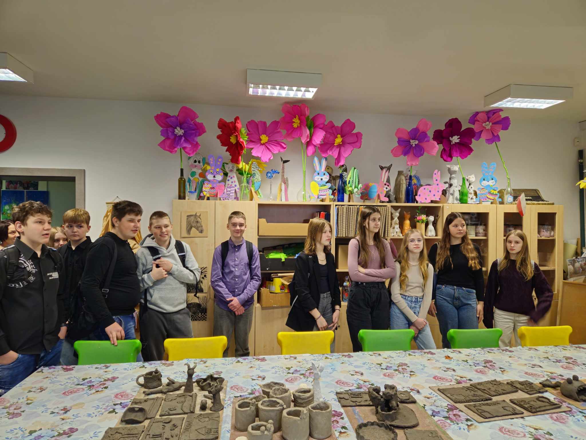 Uczniowie klas siódmej i ósmych odwiedzili Powiatowe Centrum Animacji Społecznej w Tomaszowie Mazowieckim. Podczas wizyty zostali oprowadzeni po obiekcie – zobaczyli m.in. pracownie: muzyczną, rzeźbiarską i inne, a także ściankę wspinaczkową, siłownię oraz salę widowiskową. Na zakończenie uczestnicy otrzymali drobne upominki i zrobili pamiątkowe zdjęcie na scenie. Wizyta przebiegła w miłej i inspirującej atmosferze, a uczniom towarzyszyły opiekunki: Pani Renata Wochna, Pani Agata Karlińska i Pani Jolanta Łańcuchowska.