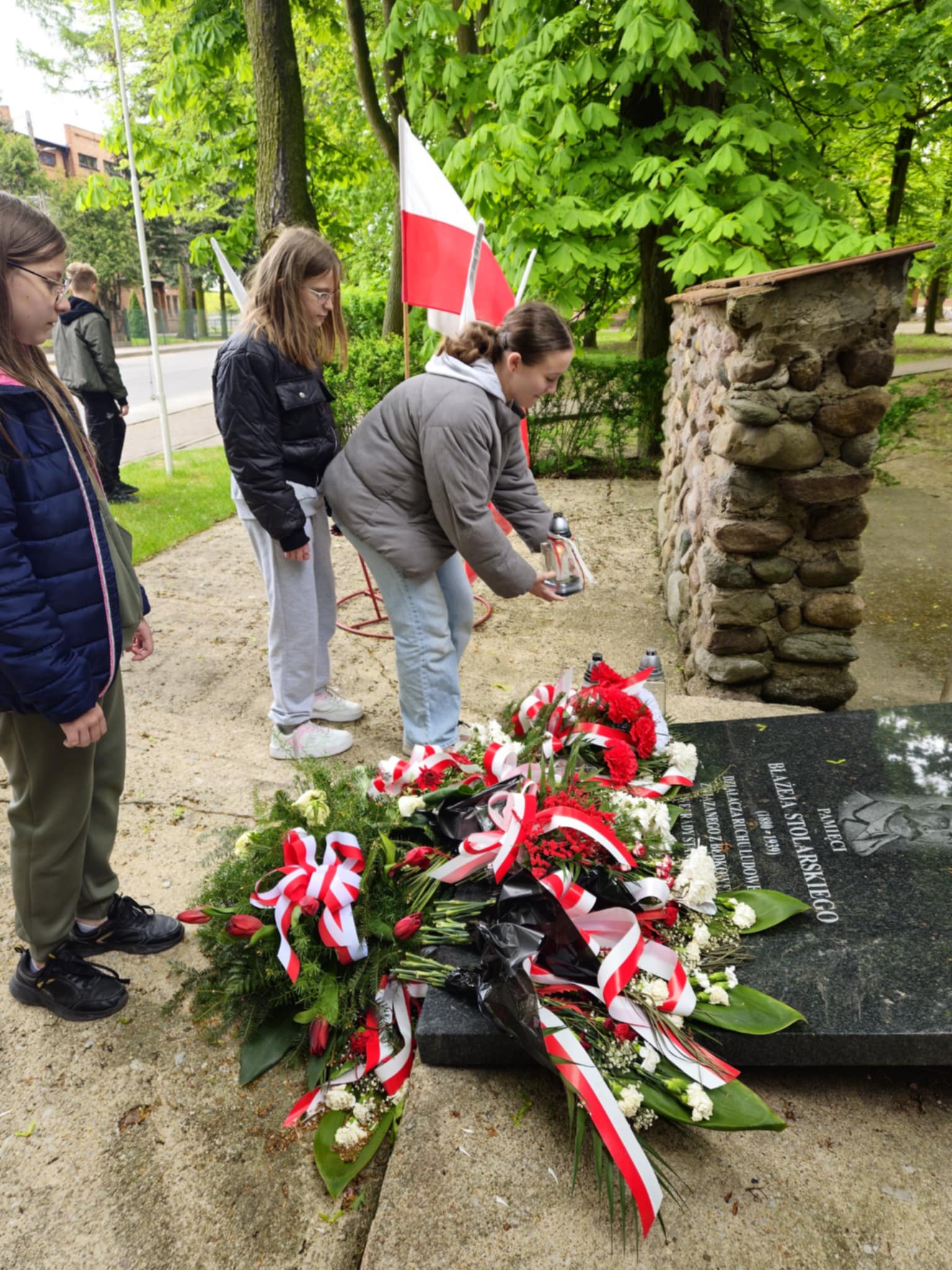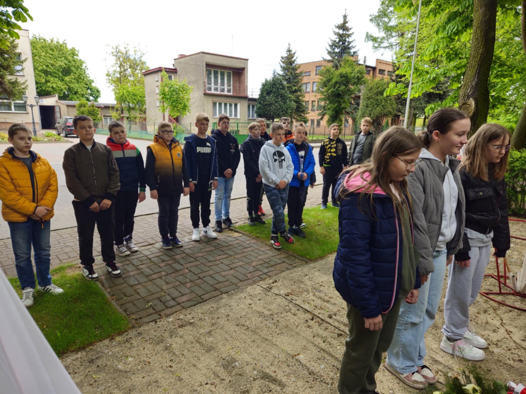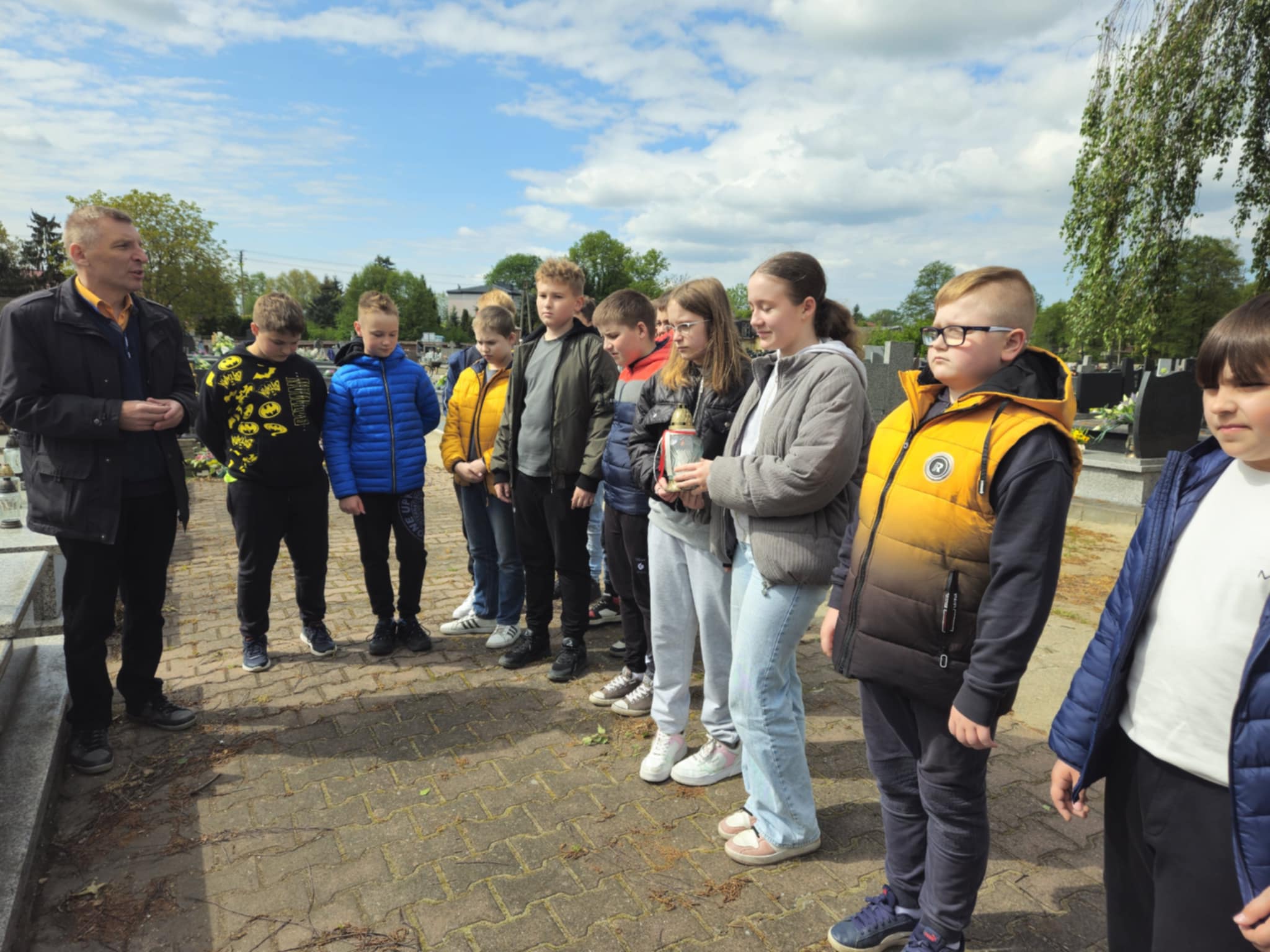 W 80. rocznicę zakończenia II wojny światowej delegacja Samorządu Uczniowskiego wraz z opiekunami Panią Agatą Karlińską i Panem Andrzejem Legiezińskim złożyła hołd pomordowanym przez III Rzeszę żołnierzom oraz mieszkańcom naszej gminy. Na parafialnym cmentarzu na grobach obrońców ojczyzny oraz przed tablicą pamięci zapalono znicze. Pan Andrzej Legieziński w krótkim wystąpieniu opowiedział o II wojnie światowej, uwzględniając lokalną historię. Obserwujący to wydarzenie mieszkańcy gminy z uznaniem wypowiadali się na temat propagowania wśród uczniów postaw patriotycznych.