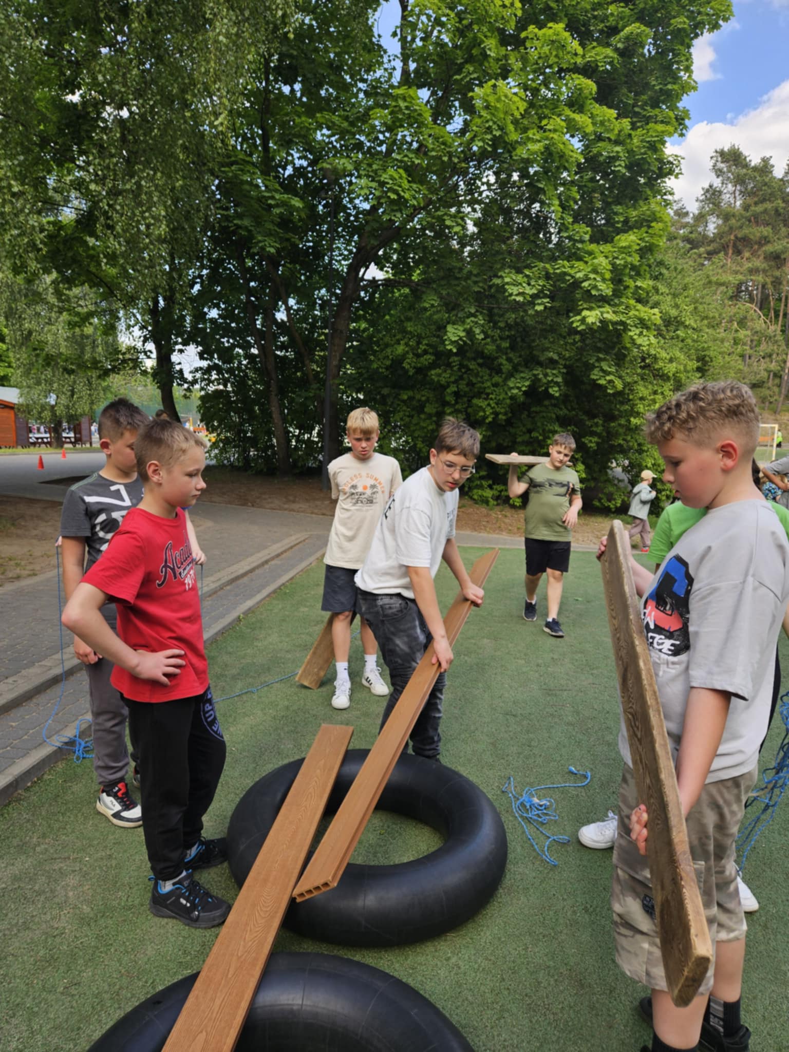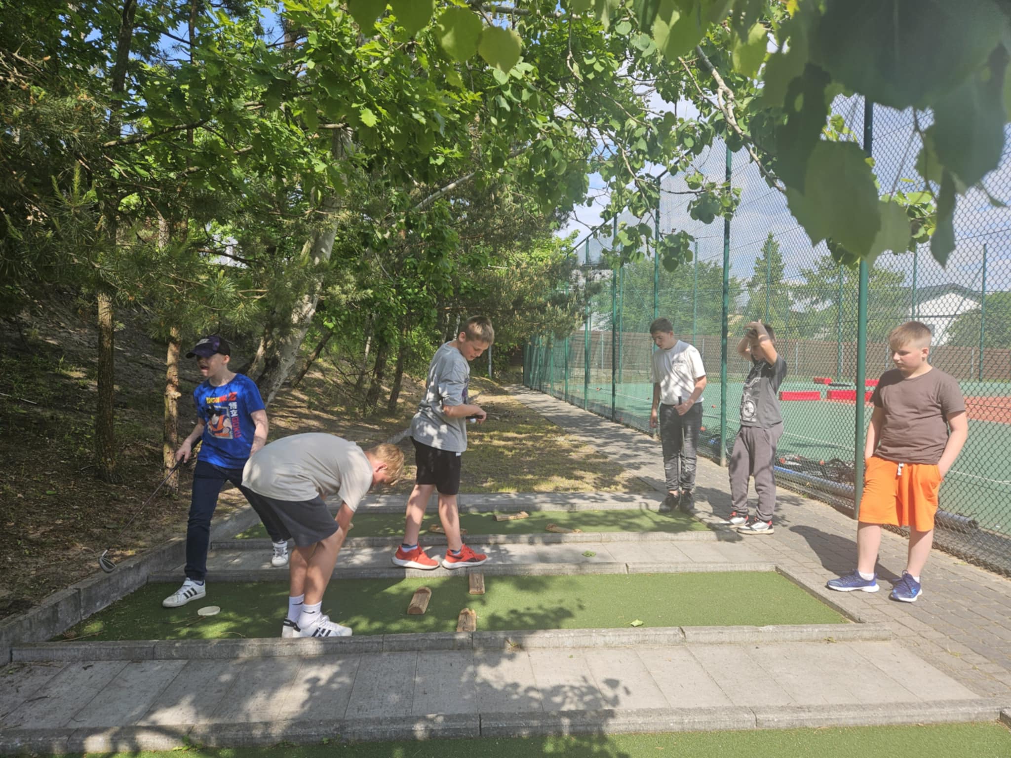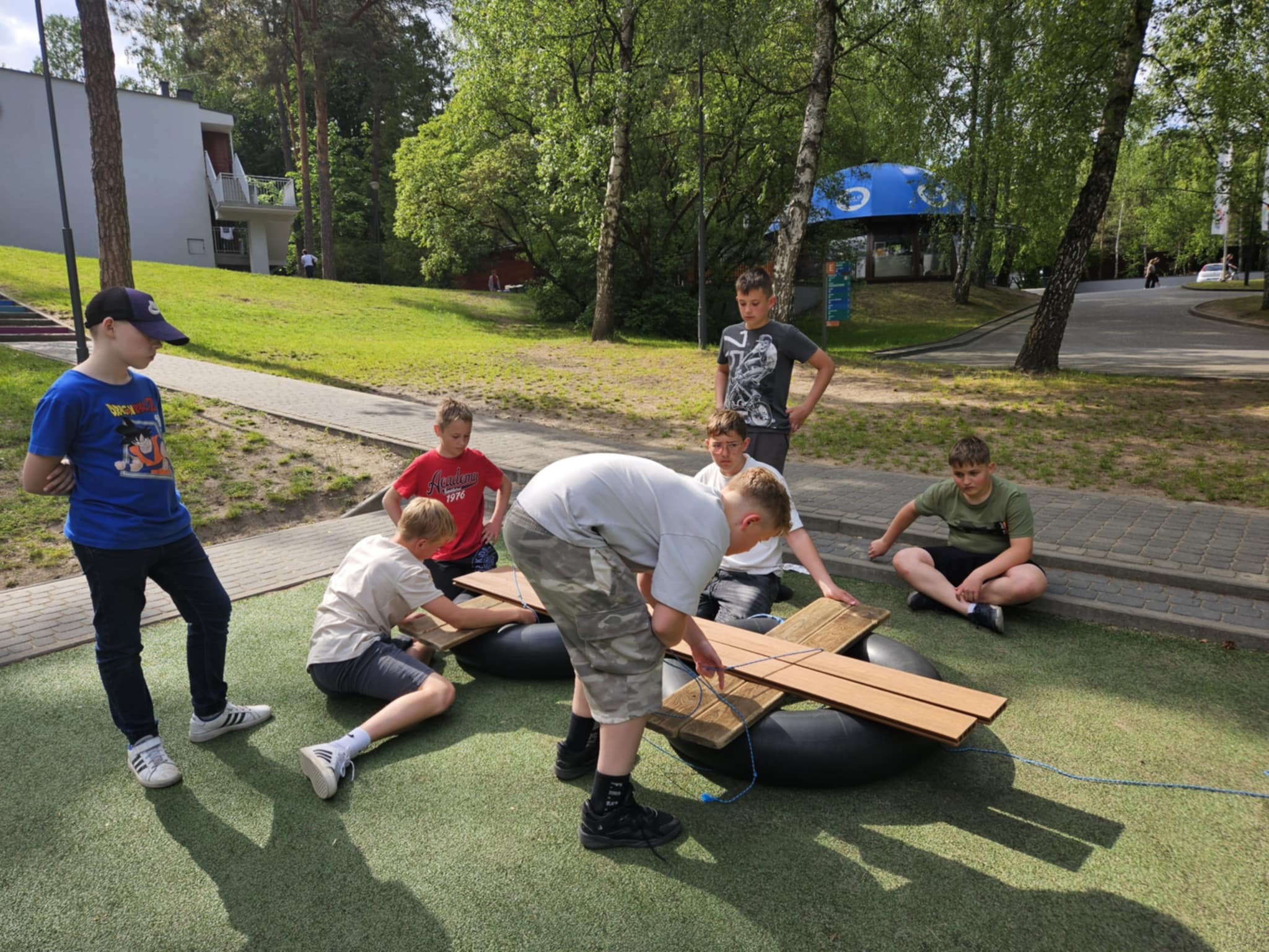 Każdego dnia uczniowie brali udział w różnorodnych aktywnościach – od strzelania z łuku i wiatrówek, przez siatkówkę, baloniadę, jazdę na gokartach, aż po archery oraz kule na wodę. Mieli także okazję spróbować jazdy na segwayach i quadach oraz zdobyć ściankę wspinaczkową. Sportowe emocje potęgowały gry w hokeja, minigolfa i koszykówkę, a relaks zapewniało kąpanie się w basenie. W trakcie pobytu odwiedzili też park linowy, gdzie sprawdzali swoje umiejętności i pokonywali różne trasy z przeszkodami.
