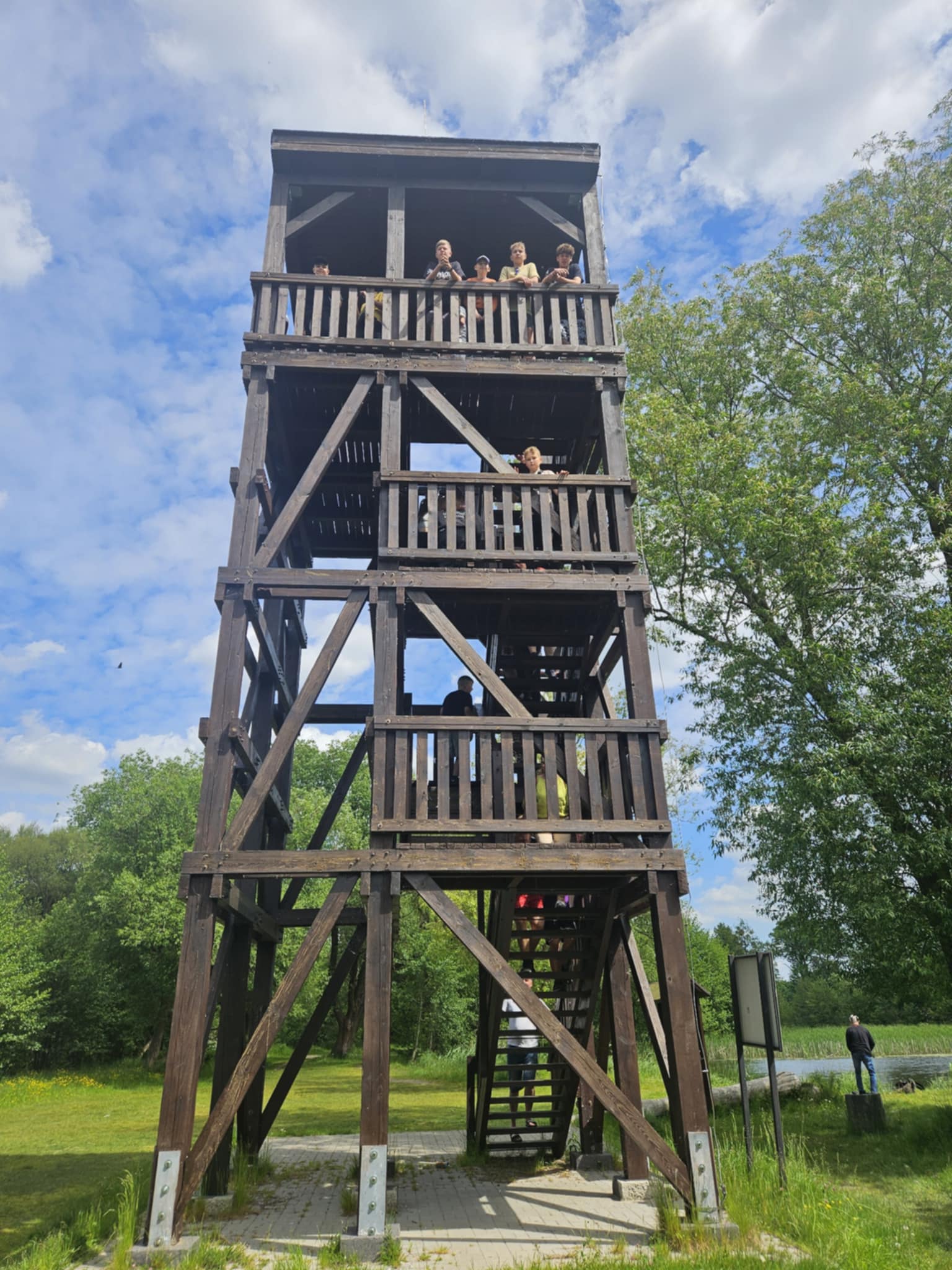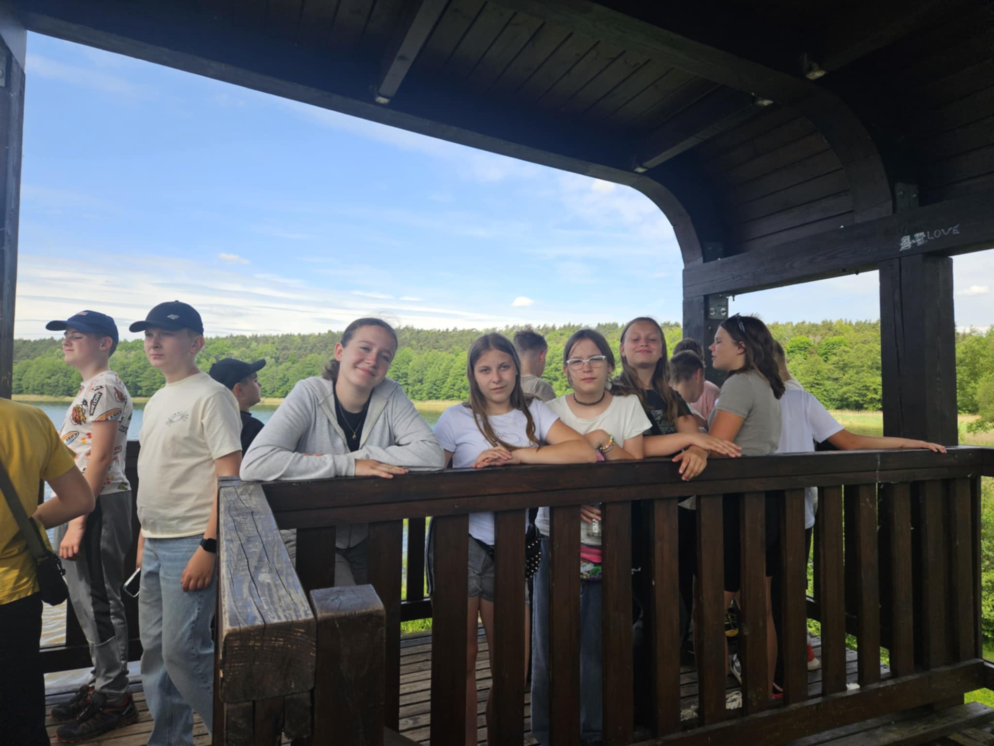 Na zakończenie wycieczki uczniowie wspięli się na wieżę widokową, skąd podziwiali rozległą panoramę Jeziora Lidzbarskiego rozciągającą się na wiele kilometrów. Ponadto wzięli udział w ciekawej prelekcji na temat Mazur, Welskiego Parku Krajobrazowego oraz lokalnej fauny i flory.