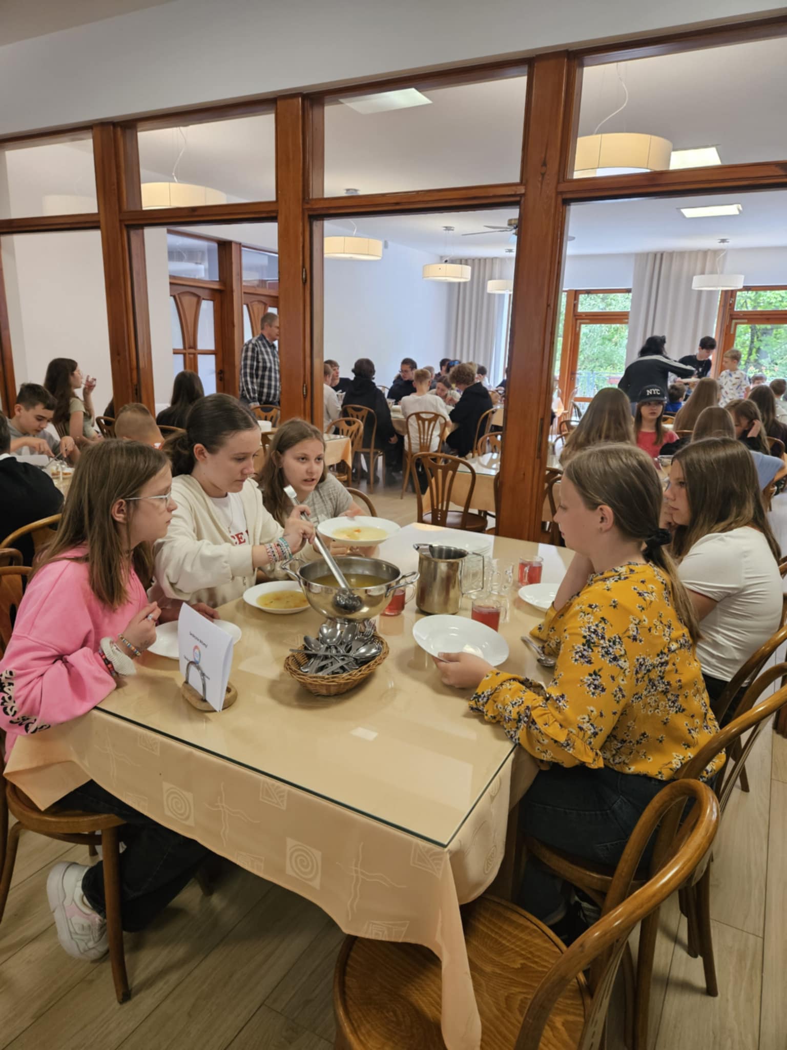 Jednym z najbardziej widowiskowych wydarzeń była bitwa na balony wypełnione wodą, która wywołała wiele radości i śmiechu. Uczniowie korzystali również z nowoczesnych sal multimedialnych, budowali tratwy oraz rywalizowali w dużych piłkarzykach. Po dniach pełnych atrakcji wieczorami spacerowali promenadą wzdłuż linii brzegowej malowniczego jeziora, podziwiając piękne zachody słońca. Wieczorne zabawy integracyjne w pokojach były doskonałą okazją do bliższego poznania się i wspólnej zabawy.