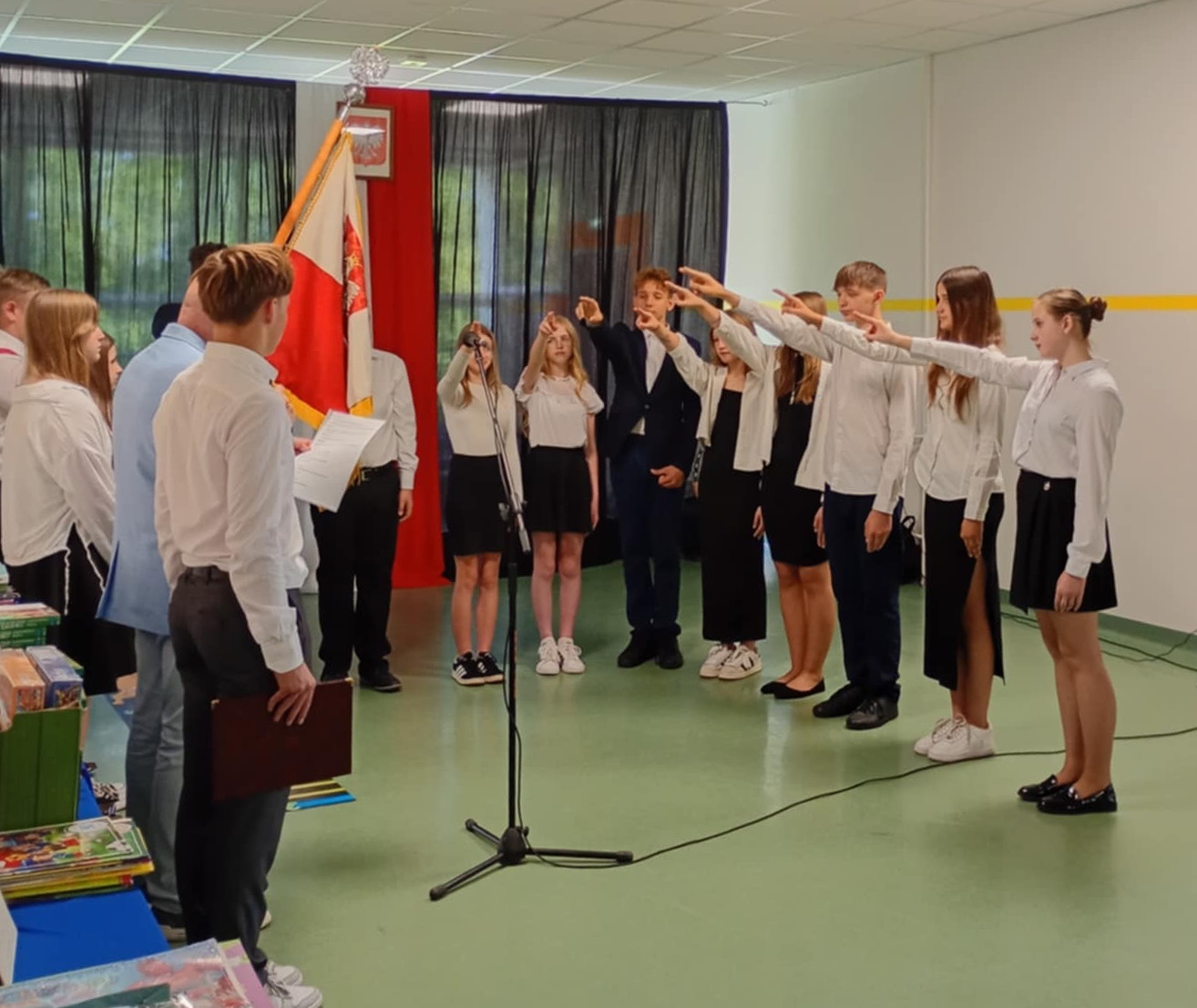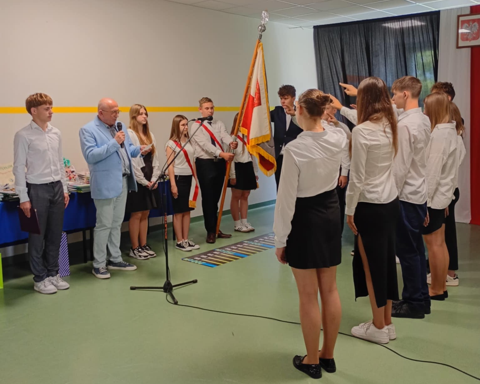 Z rąk ustępującego przewodniczącego Norberta Błocha obowiązki przejął Kacper Kowara. Jakub Garnys, Julia Cichura, Oliwia Piechna, Paweł Maciaszczyk, Zuzanna Gazda, Anastazja Budner, Michał Maciaszczyk, Wiktoria Papiewska i Karolina Piwowarska będą tworzyć trzy zmiany pocztu sztandarowego.