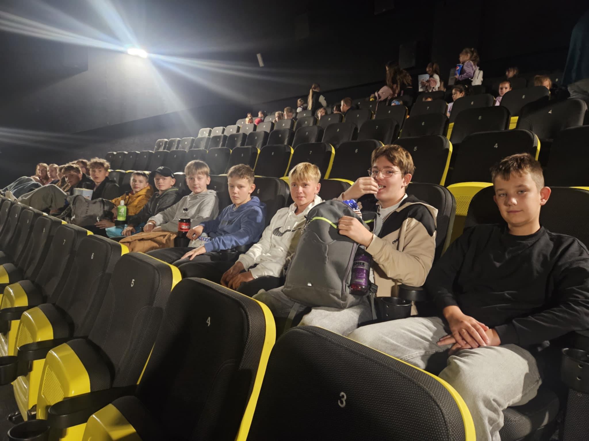 Uczniowie klasy VI z okazji Dnia Chłopaka udali się do kina Helios w Tomaszowie Mazowieckim na seans pt. „O psie, który jeździł koleją 2”. Wyjazd zorganizowała pani Renata Wochna, a opiekę nad uczniami sprawowała wychowawczyni – pani Agata Karlińska. Seans poprzedziła prelekcja w ramach cyklu „Kino na Temat”, poświęcona odpowiedzialnej opiece nad zwierzętami oraz problematyce pobytu czworonogów w schroniskach. Film, pełen wzruszających i pouczających treści, uświadomił uczniom wartość przyjaźni, empatii i troski o innych, a także przypomniał o odpowiedzialności człowieka za los zwierząt.