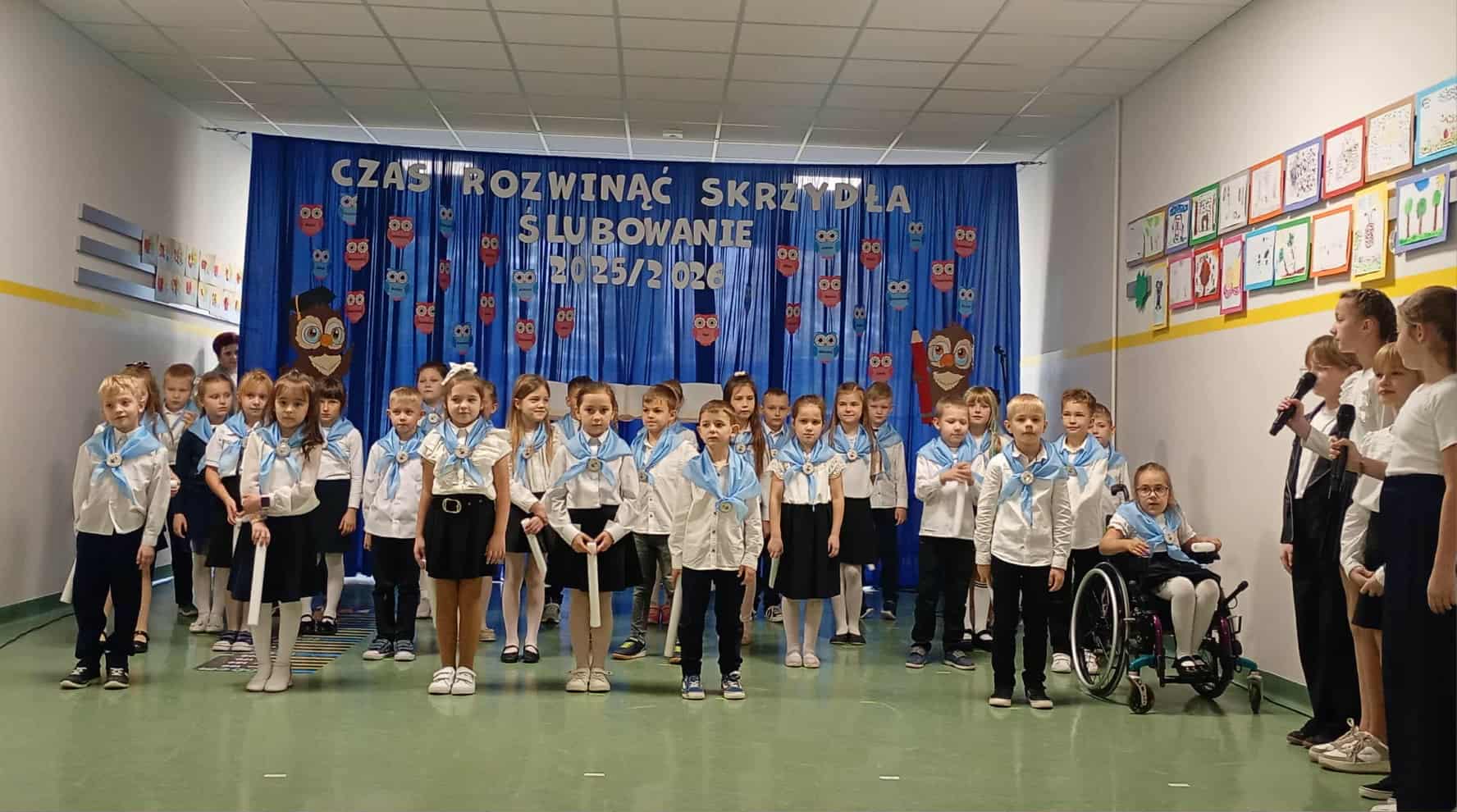 W niezwykle podniosłej atmosferze, przed pocztem sztandarowym uczniowie ślubowali być dobrymi uczniami, dbać o dobre imię swojej klasy i szkoły. Uczyć się w szkole, kochać Ojczyznę, dla niej pracować kiedy urosną. Być dobrymi kolegami, wybaczać sobie błędy, starać się je naprawiać, a swym zachowaniem i nauką sprawiać radość rodzicom i nauczycielom.