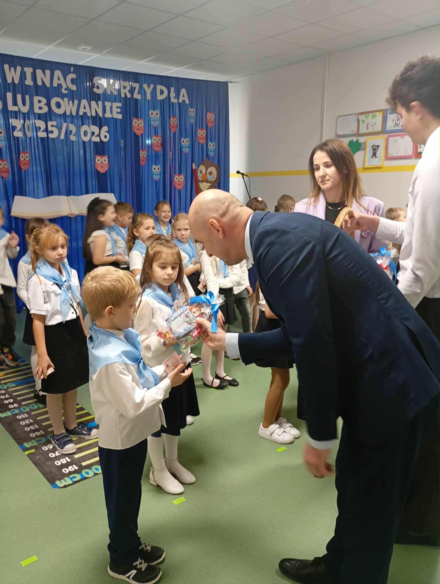 Po ceremonii pasowania dzieci otrzymały z rąk Pana Wójta Dariusza Misztala legitymację szkolną oraz ufundowaną przez niego niespodziankę.
