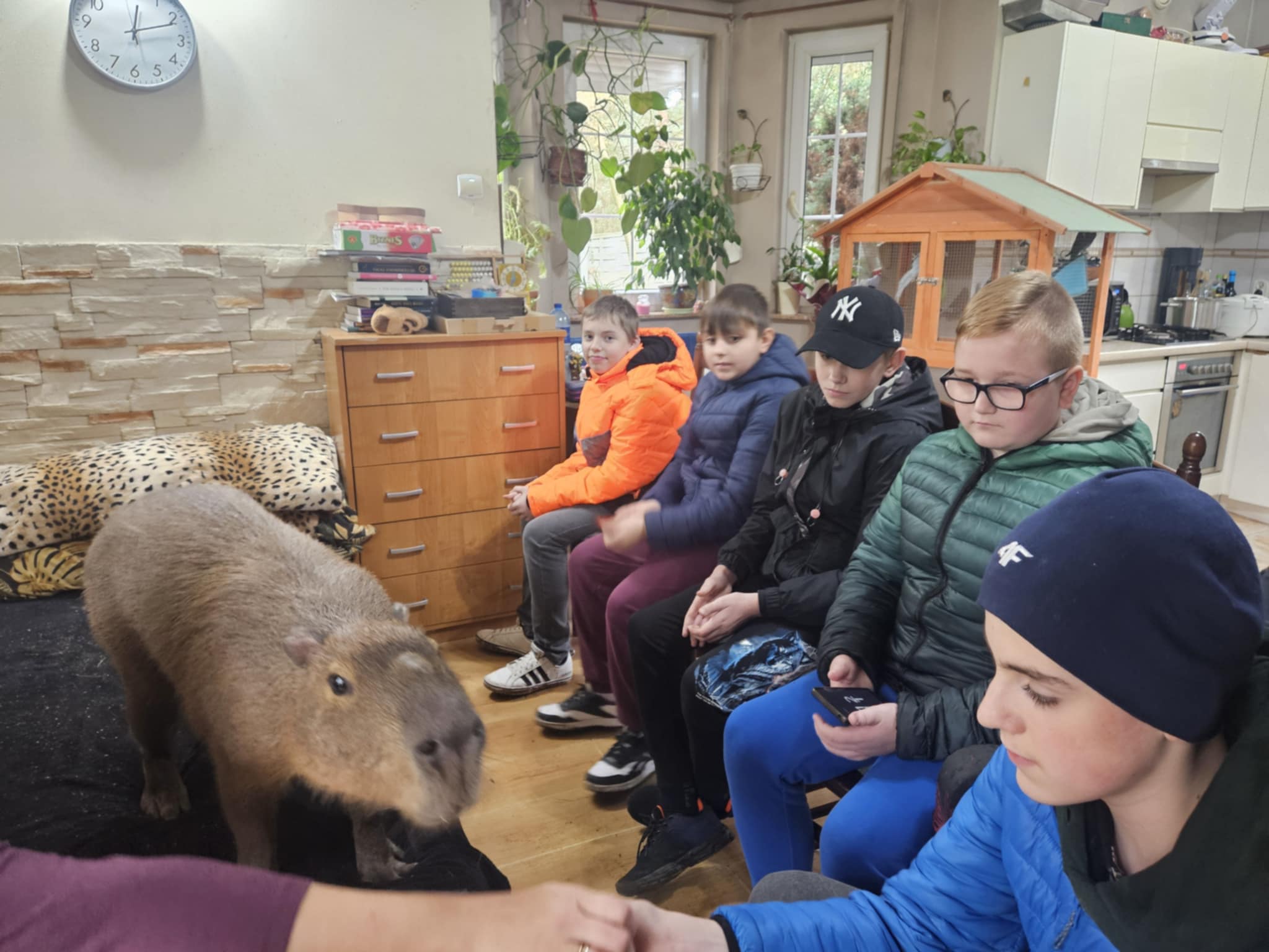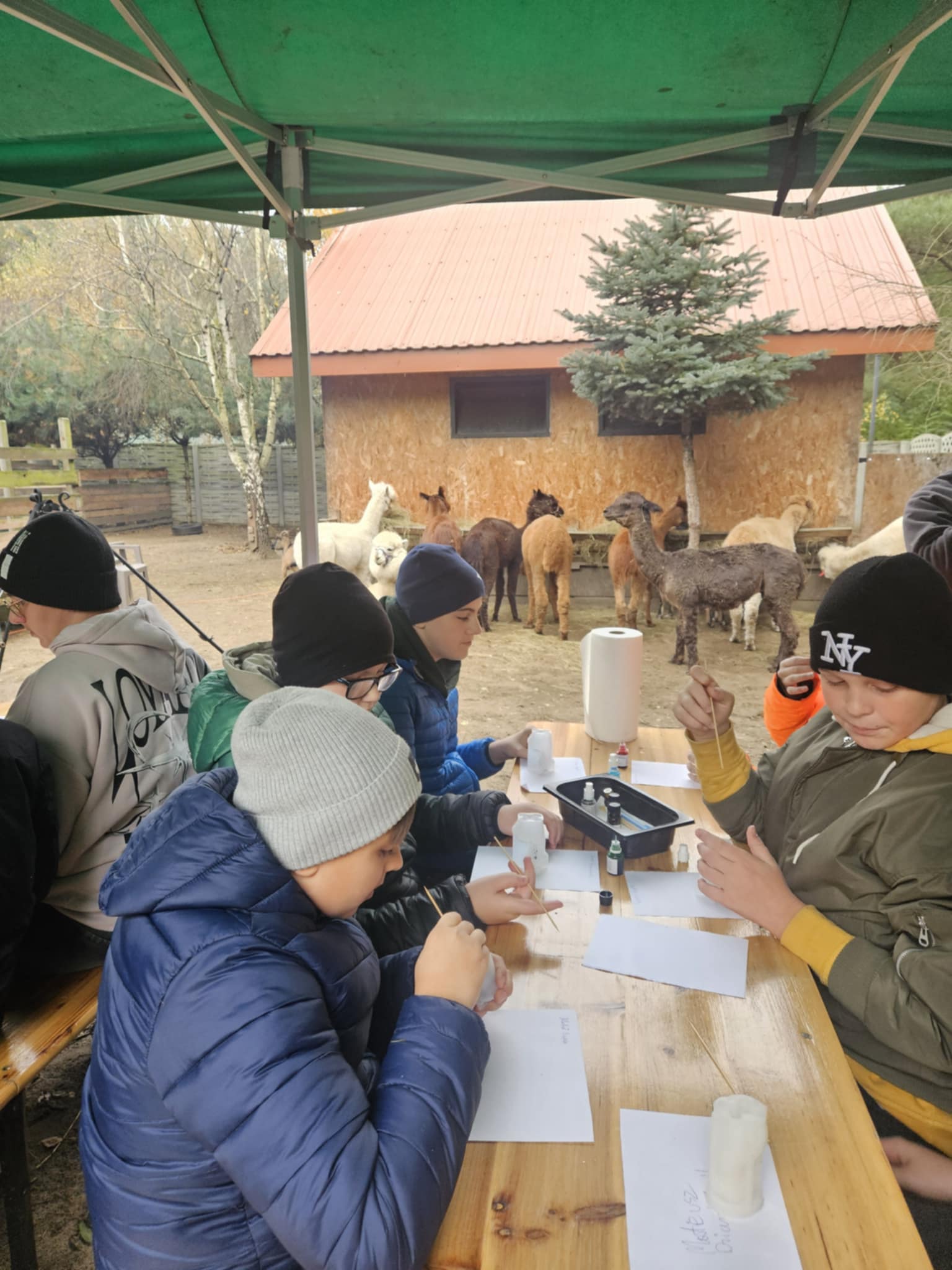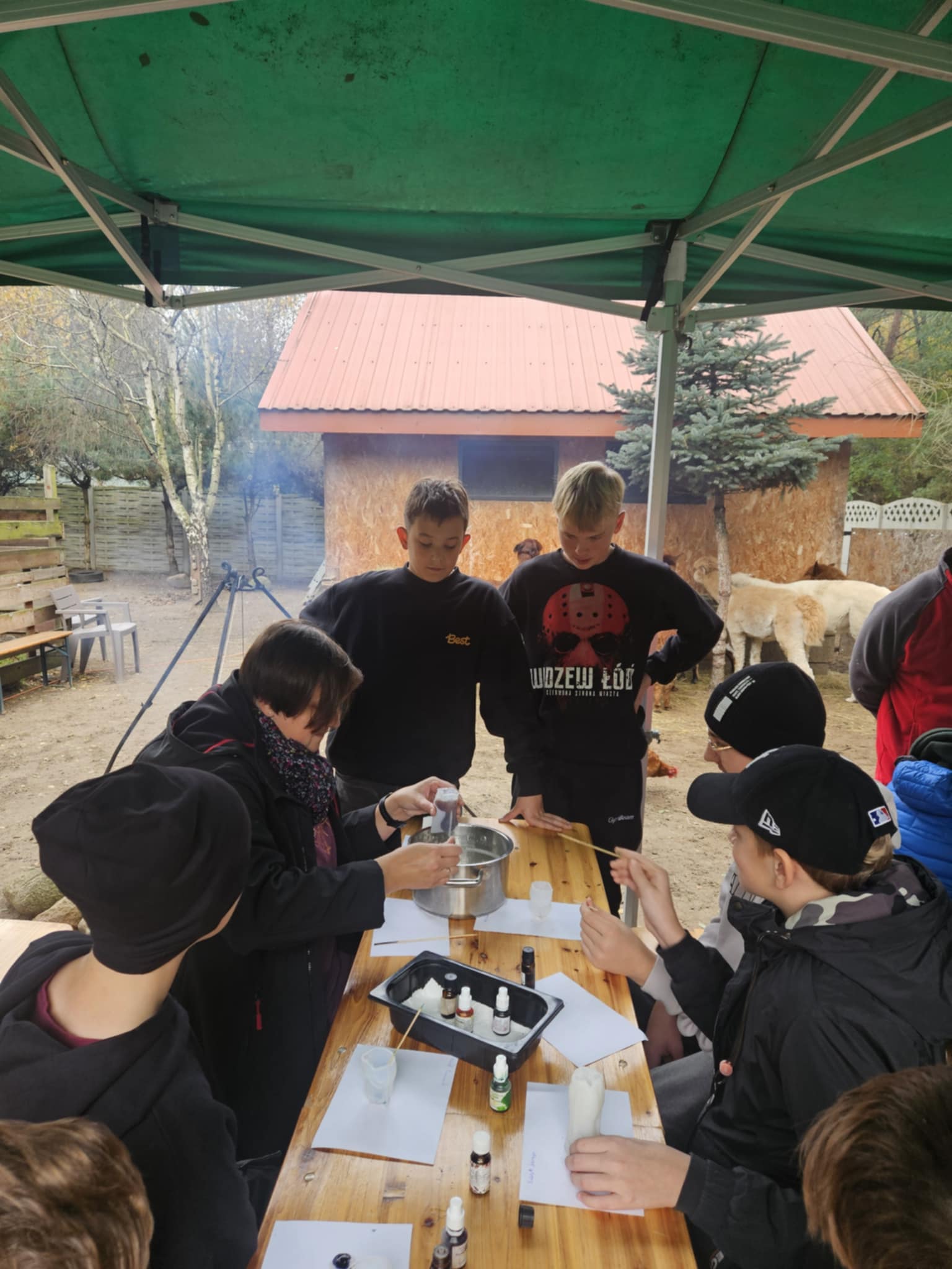 30 października uczniowie klasy szóstej spędzili wyjątkowy dzień w zagrodzie edukacyjnej Alpaki Cudaki, gdzie wzięli udział w warsztatach mydełkowych oraz spotkali się z wieloma sympatycznymi zwierzętami. Podczas zajęć każdy uczestnik mógł własnoręcznie wykonać kolorowe i pachnące mydełka glicerynowe, poznając przy tym tajniki naturalnych kosmetyków. Po warsztatach uczniowie wyruszyli na spacer po lesie w towarzystwie alpak i kóz, ucząc się, jak dbać o zwierzęta i jak nawiązywać z nimi kontakt. W zagrodzie czekało też wiele innych atrakcji – można było pogłaskać króliki i świnki morskie, zaprzyjaźnić się z psem do dogoterapii Borysem, posłuchać skrzeczenia papug, a także poznać prawdziwą gwiazdę zagrody – kapibarę Mańka, który szybko skradł serca wszystkich uczestników. Warsztaty były bezpłatne, ponieważ środki na ich realizację pozyskała z Narodowego Instytutu Kultury i Dziedzictwa Wsi wychowawczyni klasy – pani Agata Karlińska, która również zorganizowała cały wyjazd. W opiece nad uczniami pomagał pan pedagog Janusz Ozga. W drodze powrotnej uczestnicy wyjazdu zatrzymali się na wale, skąd podziwiali malowniczą panoramę jeziora Jeziorsko, zobaczyli kościół pw. św. Marka Ewangelisty – najmniejszą parafię w Polsce, a także jeden z folkowych przystanków inspirowanych twórczością Tadeusza Makowskiego – „Wiejskie podwórko”. Serdeczne podziękowania kierujemy do Rodziców za przygotowanie pysznych kiełbasek na ognisko oraz do Pana Kierowcy Damiana za bezpieczną i miłą podróż.