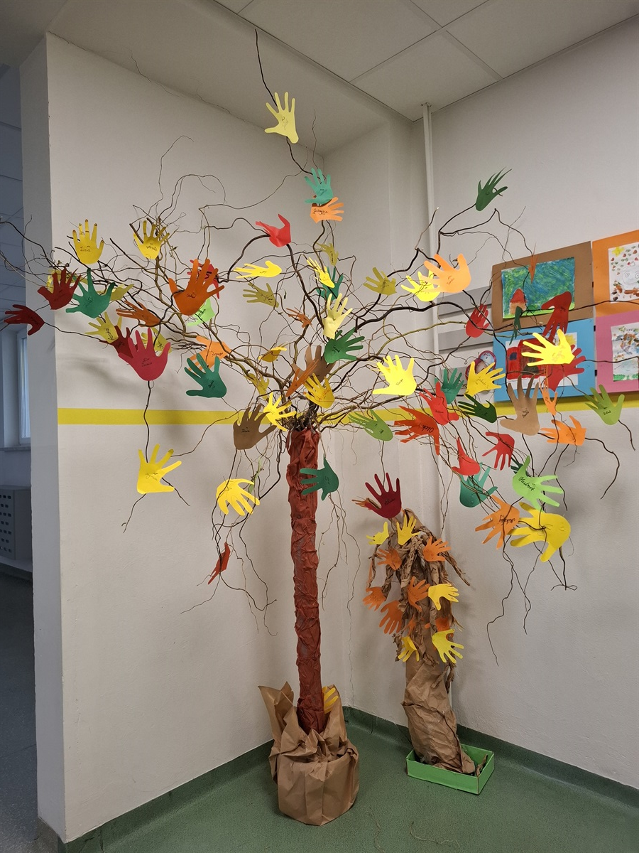 W związku z odbywającym się w szkole Tygodniem Szczęścia i Światowym Dniem Drzewa 10 października uczniowie klas I - III wraz z wychowawczyniami stworzyli kreatywne drzewka szczęścia. Idealne połączenie radości życia jaką dają nam drzewa i szczęścia jakiego doświadczamy mogąc żyć wśród drzew w zgodzie z ludźmi, zaowocowało niebywałymi drzewkami na naszym piętrze. Każde dziecko odrysowało, wycięło i podpisało swoją dłoń, a następnie zostały one przymocowane do korony drzew.