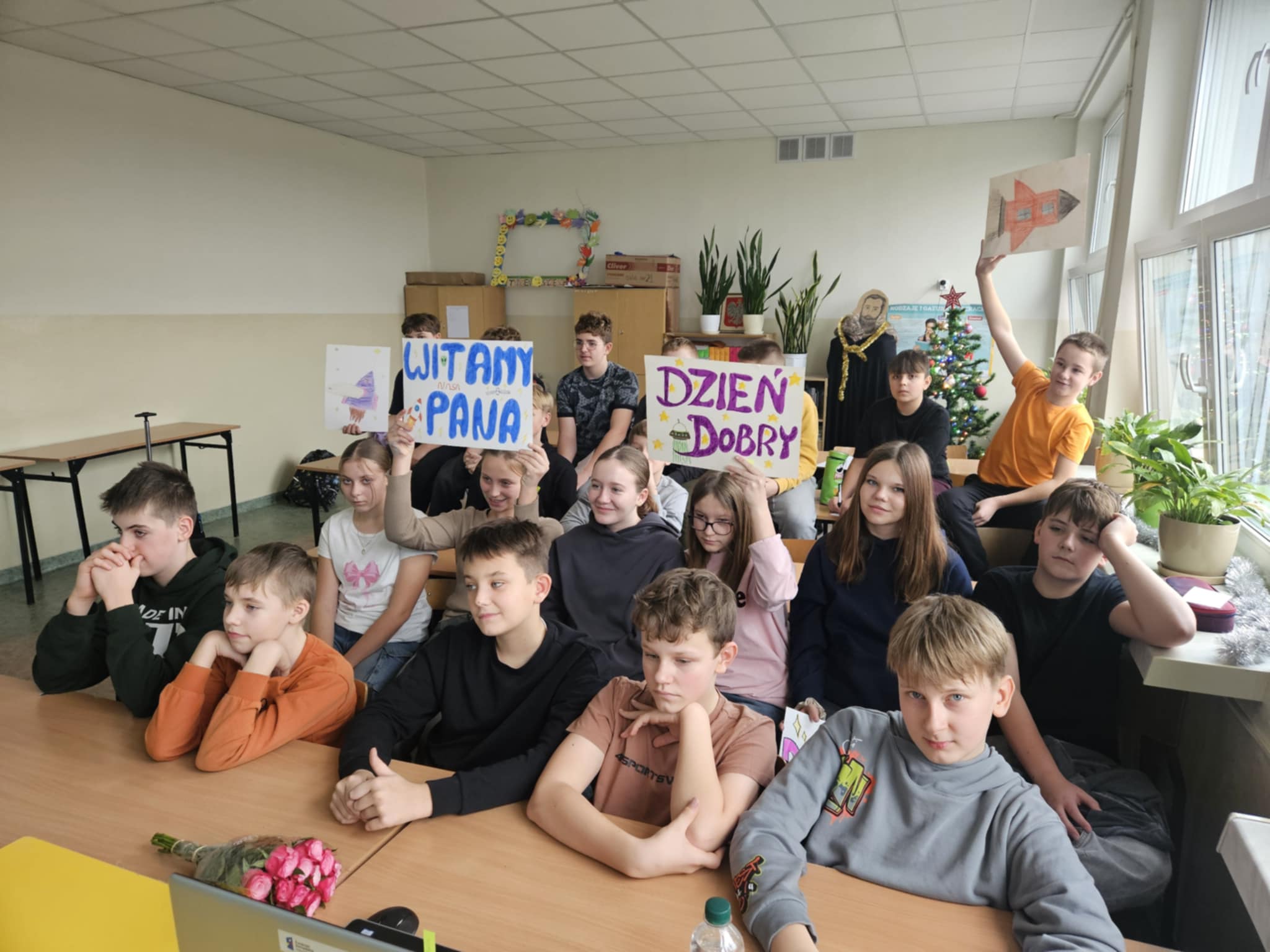 o kosmosie. 9 grudnia uczniowie klasy szóstej wzięli udział w tym wyjątkowym wydarzeniu. Tematem lekcji prowadzonej w formule online przez inżyniera systemów Szymona Krawczuka było przeprowadzanie eksperymentów na Międzynarodowej Stacji Kosmicznej. Eksperta