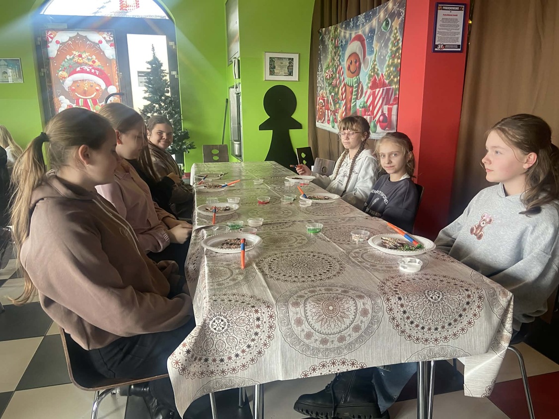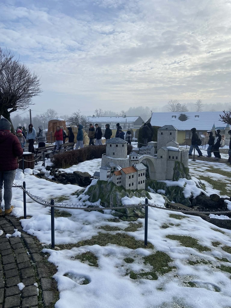 Następnego dnia uczestnicy udali się do Parku Miniatur w Inwałdzie, gdzie z zaciekawieniem obejrzeli kilkadziesiąt miniatur słynnych budowli polskich, europejskich i światowych. Pan przewodnik przybliżył historię m.in. Watykanu, rzymskiego Koloseum, Akropolu czy Stadionu Narodowego. W świąteczny nastrój wprawiły wszystkich warsztaty zdobienia pierników. Niektórzy „słodką” pamiątkę zabrali do domu, zaś łakomczuchy skonsumowały jako przedobiedni deser. Dopełnieniem wizyty w Świecie Marzeń było spotkanie ze św. Mikołajem. Opiekę nad uczniami sprawowały Panie: Urszula Majewska, Adamina Marek-Kot i Renata Wochna – organizatorka wyjazdu.