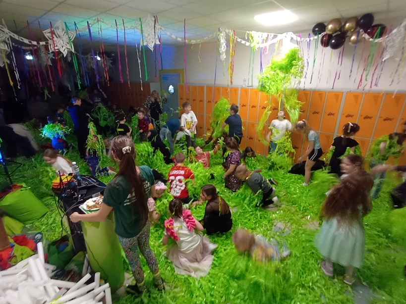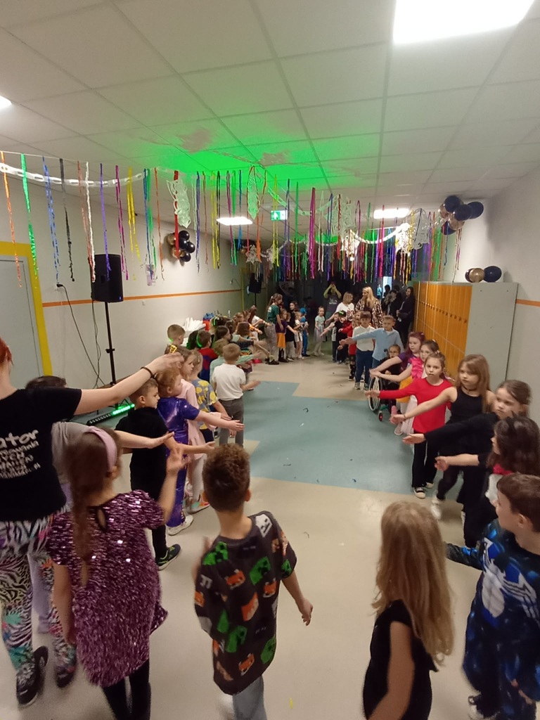 W piątek 30 stycznia udekorowany przez Samorząd Uczniowski korytarz szkolny stał się miejscem zabawy choinkowej. Najpierw tańcom i zabawom oddali się uczniowie klas 0-III, później w takt muzyki DJ bawili się starsi. Nie zabrakło też strawy cielesnej, o którą zadbała Rada Rodziców.