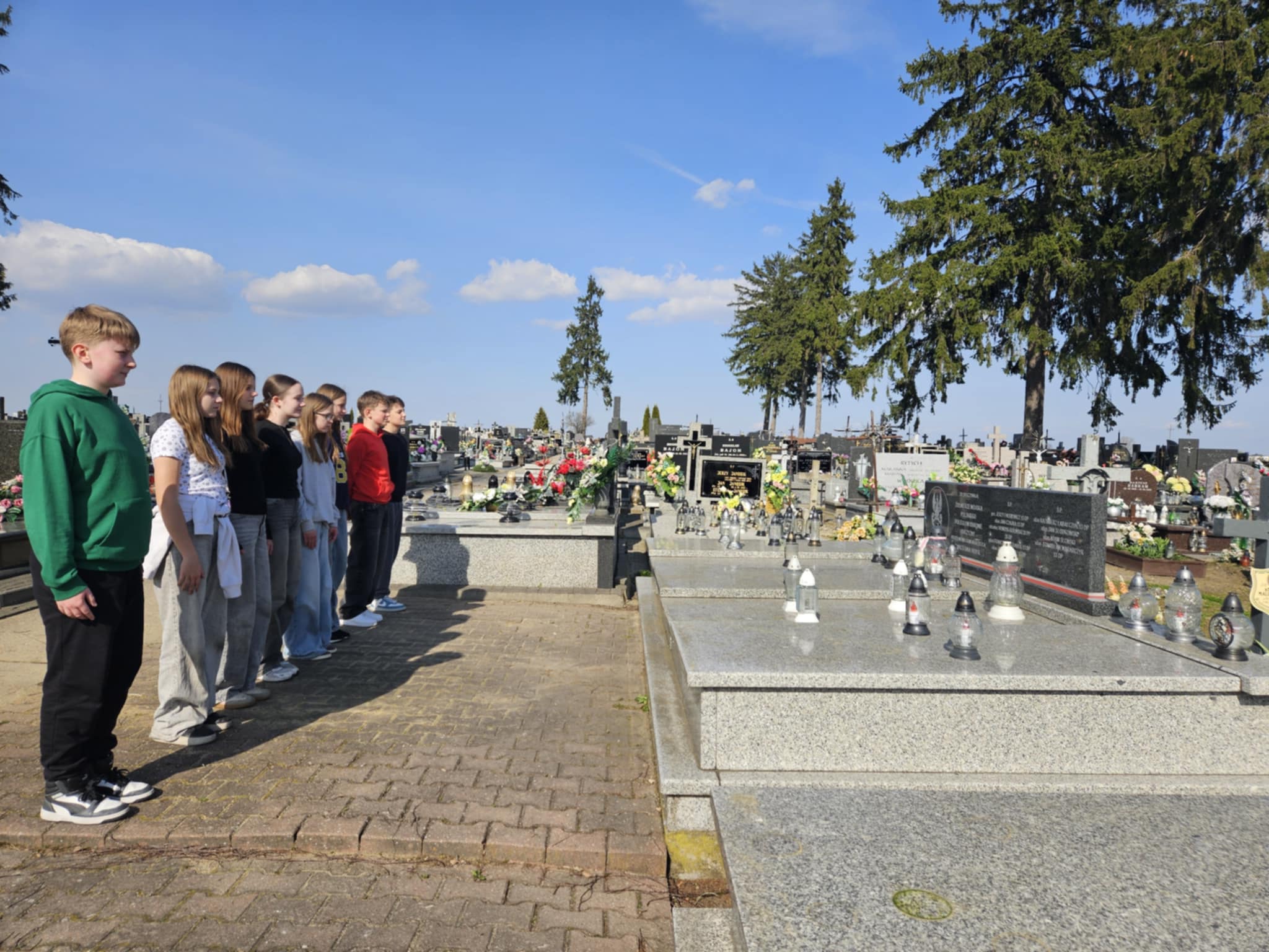 W poniedziałek 23 marca uczniowie klasy VI wraz z wychowawczynią Panią Agatą Karlińską  posprzątali mogiły ofiar I i II wojny światowej. Na parafialnym cmentarzu miejsce pochówku znaleźli polegli w grudniu 1914 r. żołnierze armii niemieckiej. Z czasów II wojny światowej odnajdziemy groby żołnierzy polskich z września 1939 r. Obok spoczywają szczątki mieszkańców gminy – cywilnych ofiar tej wojny.