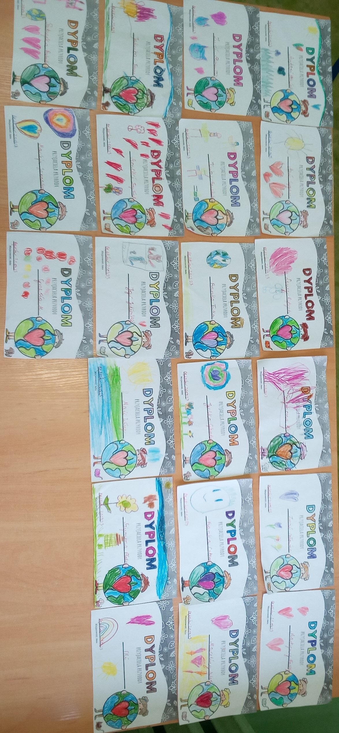 W tym dniu dzieci  malowały kolorowanki, grały w gry edukacyjne związane z tematyką oraz wykonały eko – zabawki z odpadów. Każde dziecko otrzymało również własnoręcznie ozdobiony dyplom.