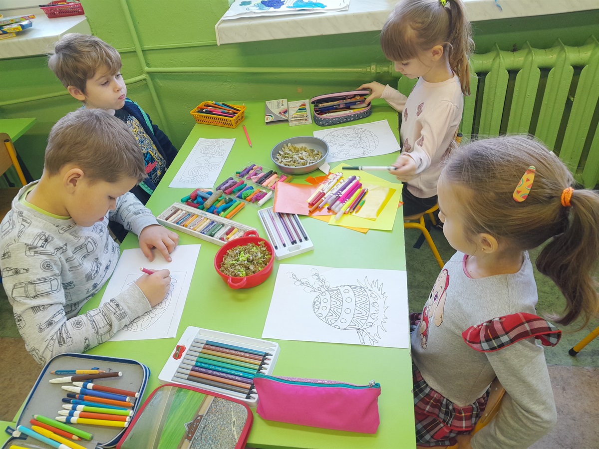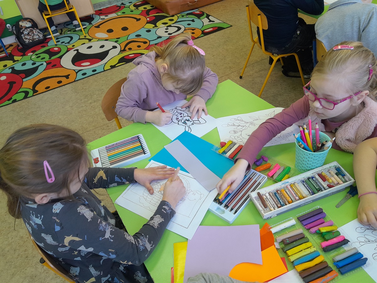 W związku ze zbliżającymi się świętami wielkanocnymi dzieci z oddziału przedszkolnego wykonywały kartki świąteczne.