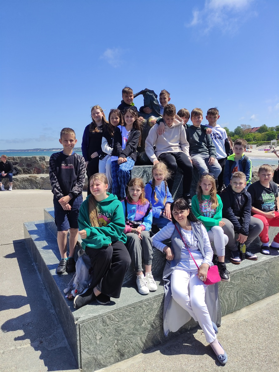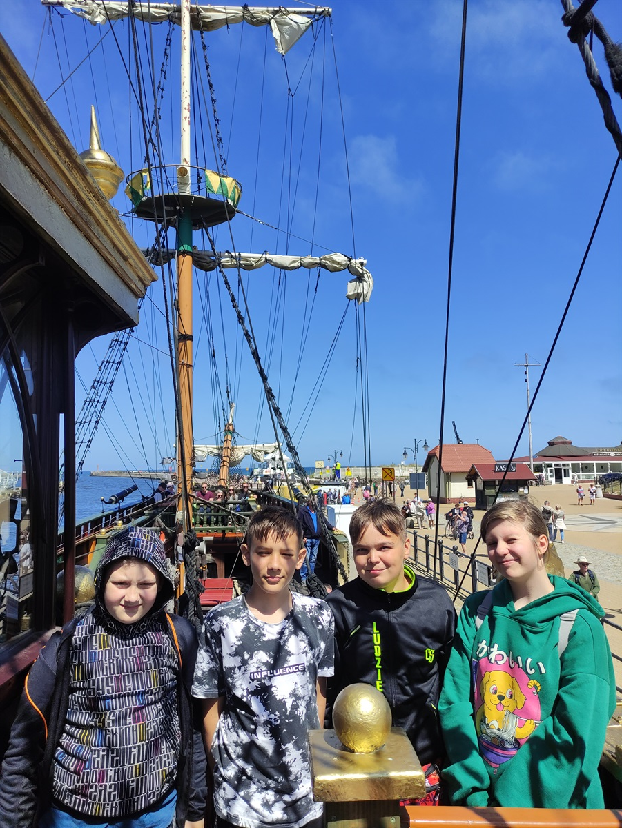 W tym uroczym miasteczku zwiedziliśmy Muzeum Ziemi Usteckiej i udaliśmy się w rejs po morzu galeonem pirackim „Unicus”. Po powrocie do portu poszliśmy na molo, by zobaczyć Bryzę Ustecką, czyli słynną syrenkę. Następnie przeszliśmy na drugi brzeg rzeki Słupi ruchomym, obrotowym mostem. Po obiedzie udaliśmy się na plażę, by skorzystać z kąpieli słonecznych. Przed wieczorem poszliśmy na spacer ścieżką edukacyjną wzdłuż wybrzeża klifowego, by poznać historię Bałtyku oraz  gatunki roślin i zwierząt Słowińskiego Parku Narodowego. Wieczór spędziliśmy przy grillu, a dzień zakończyliśmy podziwianiem przepięknego zachodu słońca. W środę niektórzy z nas postanowili powitać dzień spacerem po plaży o wschodzie słońca. Przedpołudnie spędziliśmy bardzo kreatywnie, tworząc oryginalne rzeźby z piasku, za które wszyscy uczestnicy otrzymali nagrody. Później udaliśmy się na spacer zadbanymi uliczkami Rowów, dotarliśmy do amfiteatru i kupiliśmy pamiątki. Po obiedzie wyruszyliśmy w drogę powrotną, w czasie której nie zabrakło McDonalda. Przez cały czas dopisywała nam wspaniała, słoneczna pogoda i dobry humor. Opiekunkami w czasie wycieczki były: p. Renata Wochna, p. Urszula Majewska, p. Alina Walicka i p. Agata Karlińska.