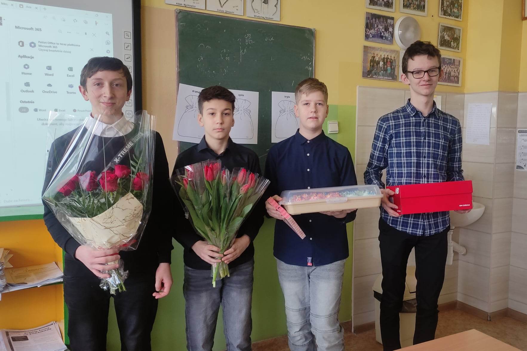 Dzień Kobiet to święto, o którym nikomu nie trzeba przypominać. O swoich koleżankach z klasy pamiętali też ósmoklasiści, którzy, oprócz kwiatów, wręczyli im słodki poczęstunek.