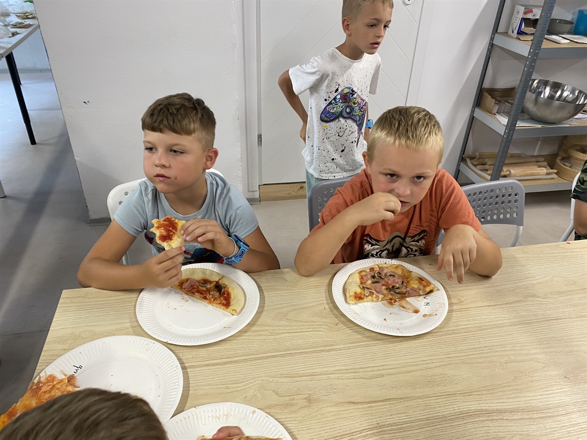 układały składniki. Po upieczeniu pizzy, każdy uczestnik półkolonii degustował