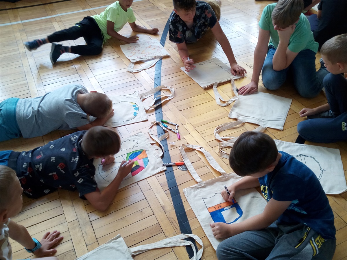 Po powrocie do szkoły uczestnicy półkolonii podzieleni na grypy brali