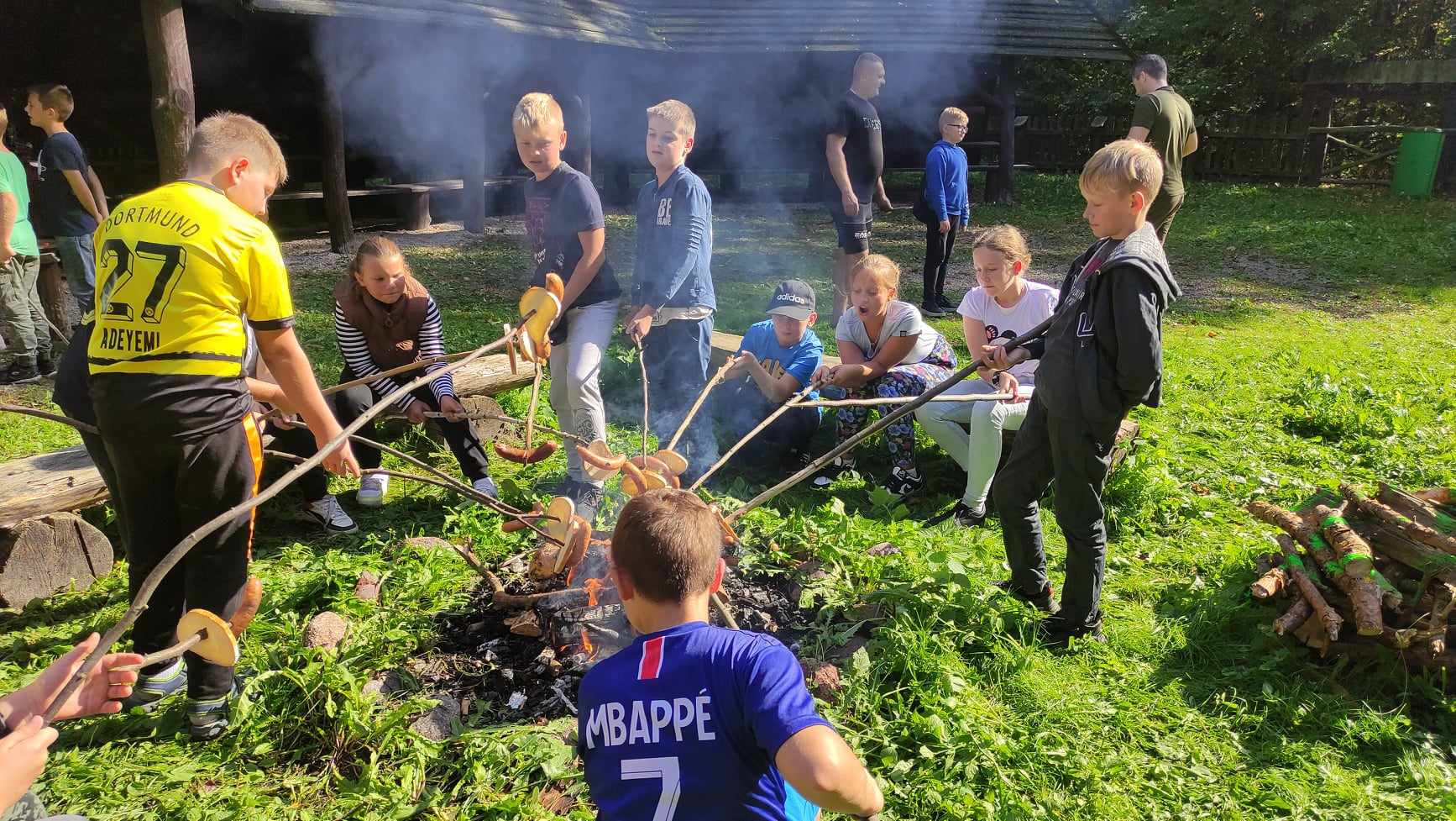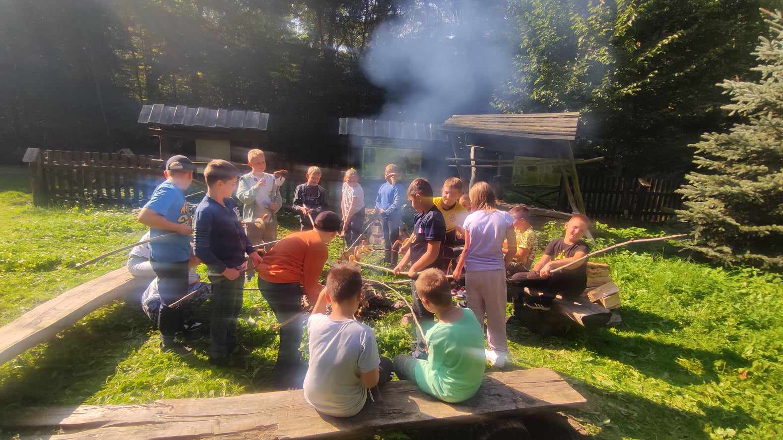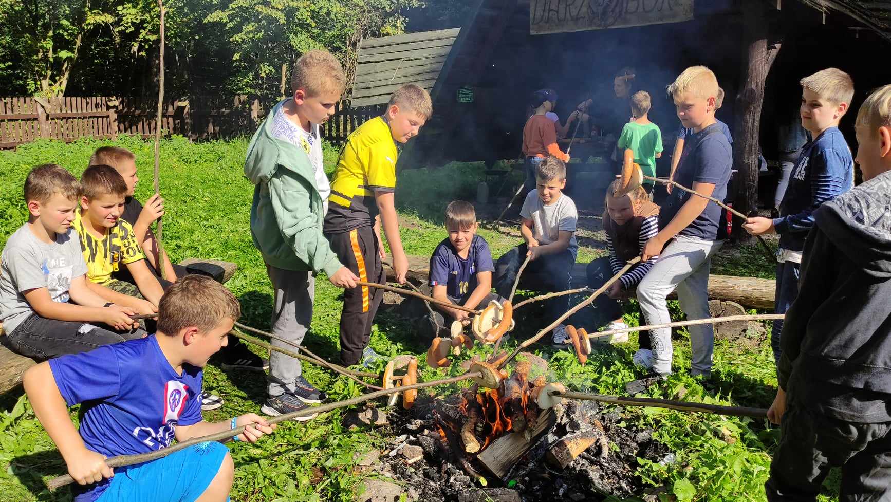 W dniu 27 września 2023 roku uczniowie klasy czwartej wraz z wychowawczynią panią Agatą Karlińską mieli okazję do niezwykłego spotkania z leśniczym oraz fascynującymi opowieściami o zwierzętach. Pod wiatą edukacyjną w Żywocinie leśniczy pan Grzegorz Marczyński podzielił się swoją wiedzą i doświadczeniem z zakresu ochrony przyrody. Uczniowie byli oczarowani jego opowieściami o różnorodności zwierząt i roślin występujących w okolicy, a także dowiedzieli się, jak dbać o otaczający nas świat. Leśniczy dzielił się swoją wiedzą na temat różnorodności przyrody, zachęcając uczniów do odkrywania i szanowania otaczającego ich środowiska. Spotkanie było doskonałą okazją do zapoznania się z różnymi gatunkami drzew i zwierząt, a także do zrozumienia, jak ważne jest zachowanie równowagi w przyrodzie. Dzieci chętnie zadawały pytania i uczestniczyły w dyskusji na temat ekologii i roli człowieka w ekosystemie. Dużo dowiedziały się też o zbiornikach retencyjnych. Pan leśniczy pomógł uczniom zrozumieć, jak ważne jest działanie na rzecz ochrony przyrody. Na zakończenie niezwykłego dnia odbyło się ognisko z kiełbaskami.
